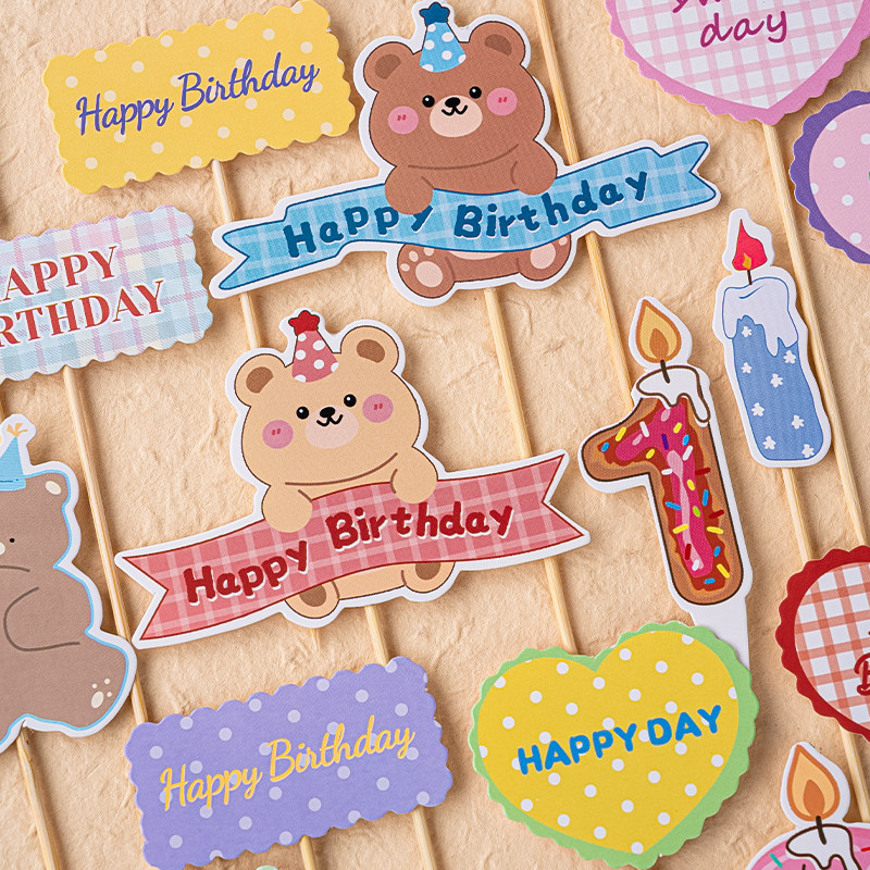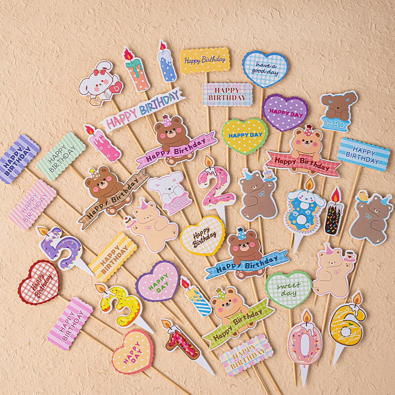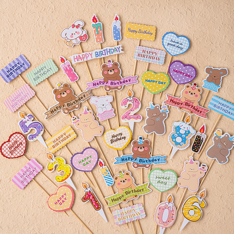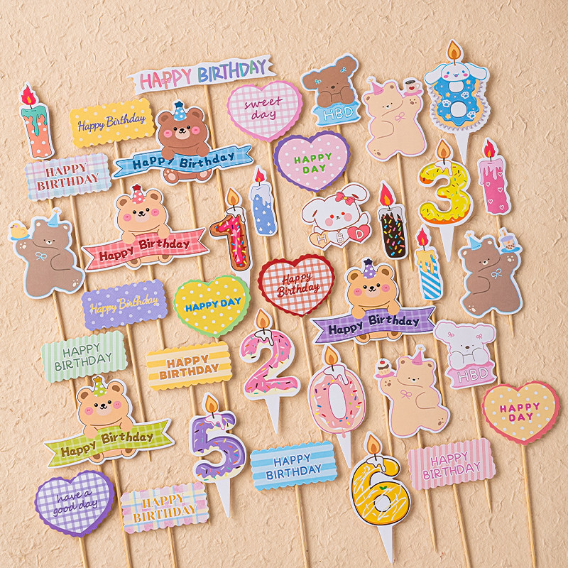 韩式ins风蛋糕装饰插件彩色数字蜡烛爱心小熊生日甜品台插卡插牌