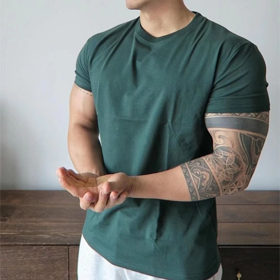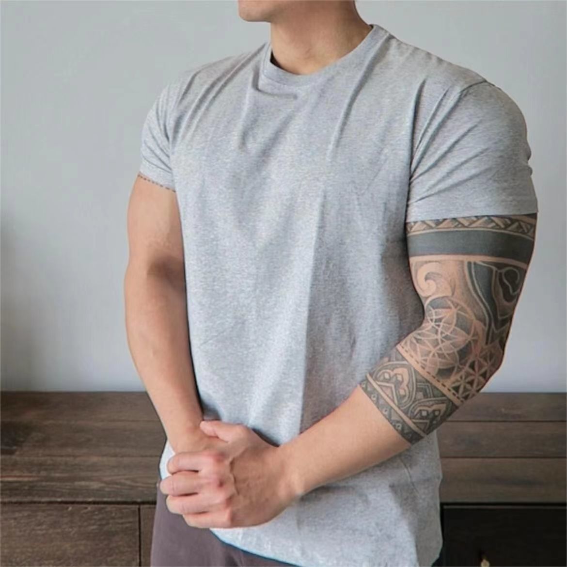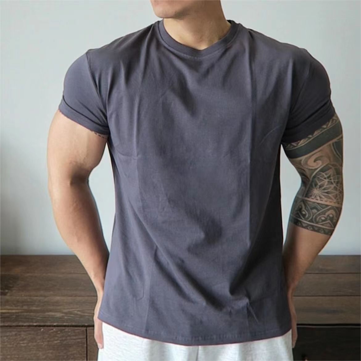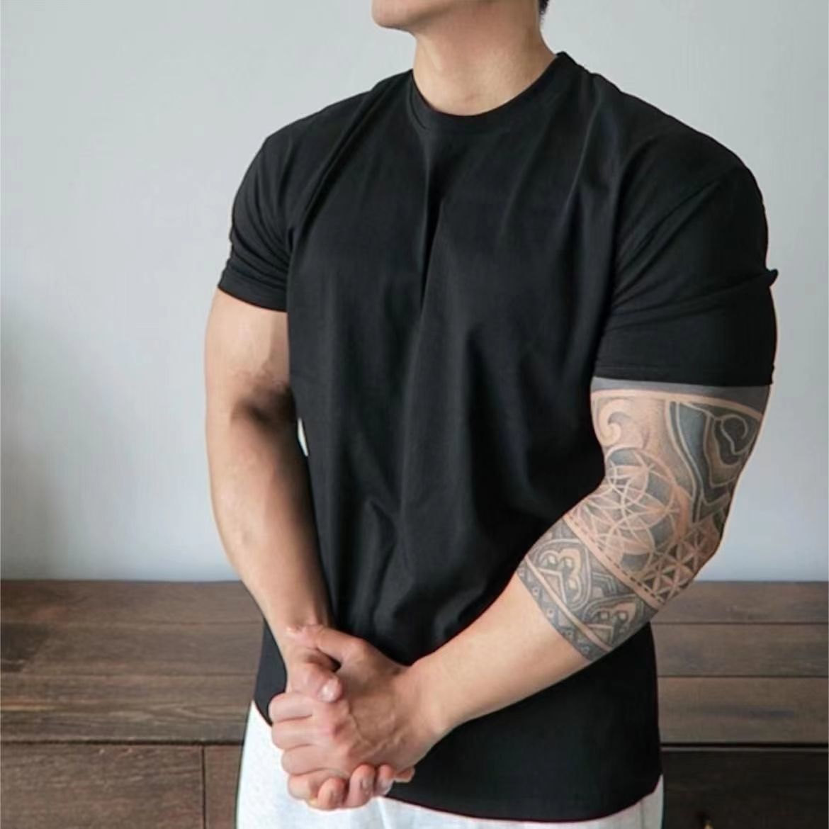 美式撸铁训练潮牌衣肌肉健身运动休闲收袖口显大垫肩t恤短袖男gd