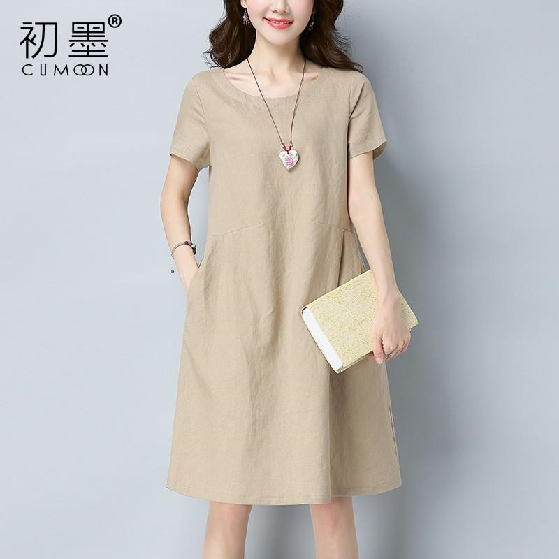 棉麻连衣裙女2024年新款夏季亚麻显瘦中K年妈妈小个子别致漂亮裙