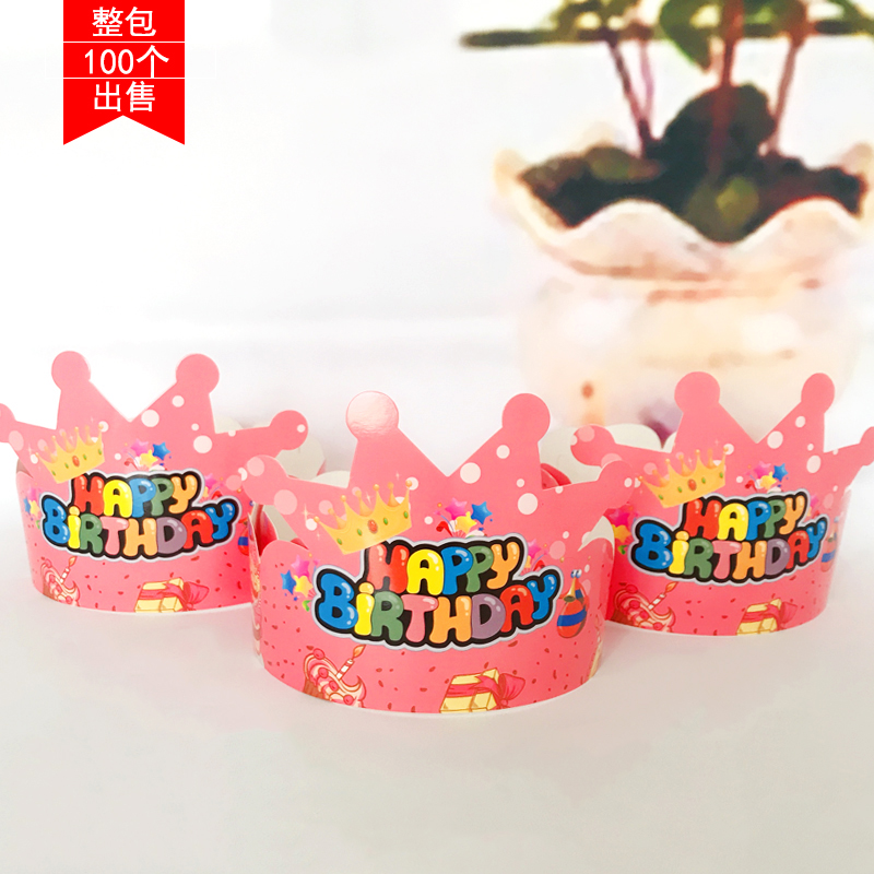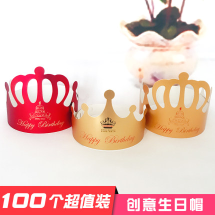 生日帽子成人儿童生日派对装扮创意蛋糕帽金卡纸皇冠帽100个批发