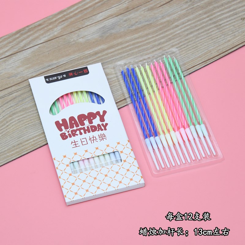 生日蛋糕创意摆件插件蜡烛螺纹彩色光杆蜡烛