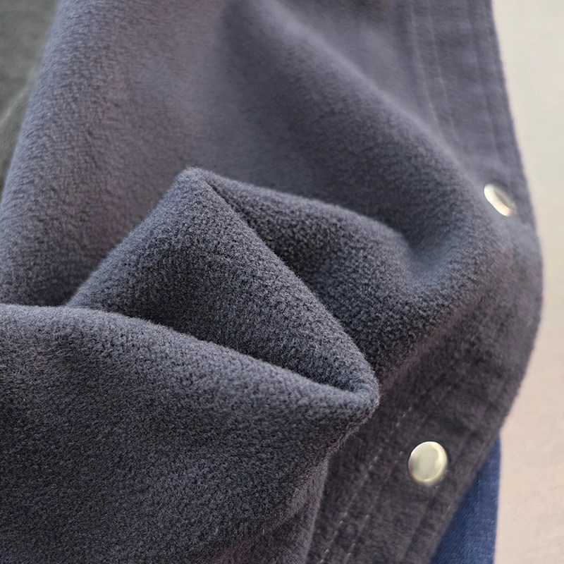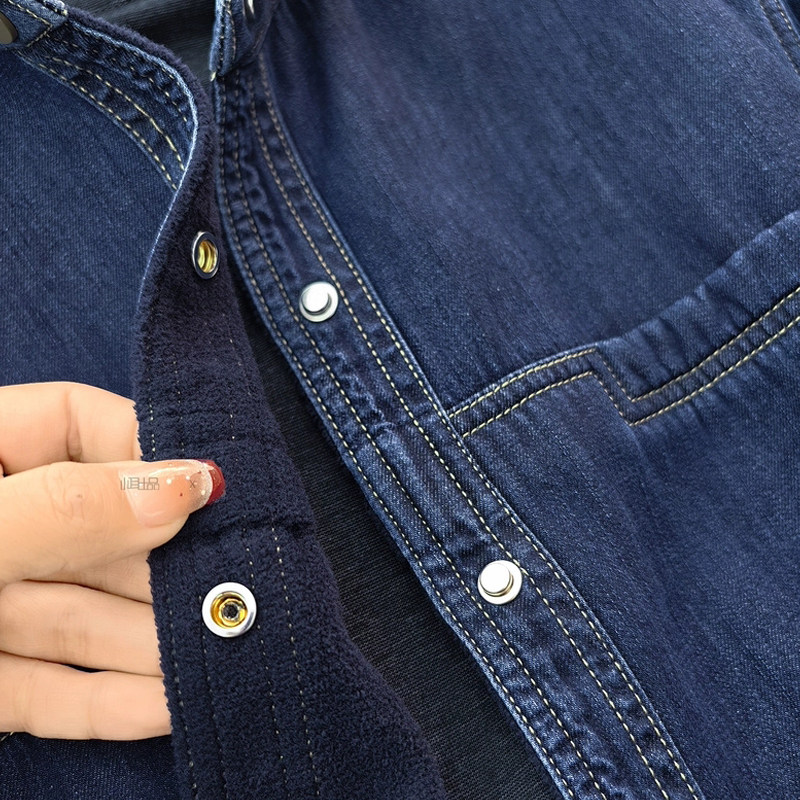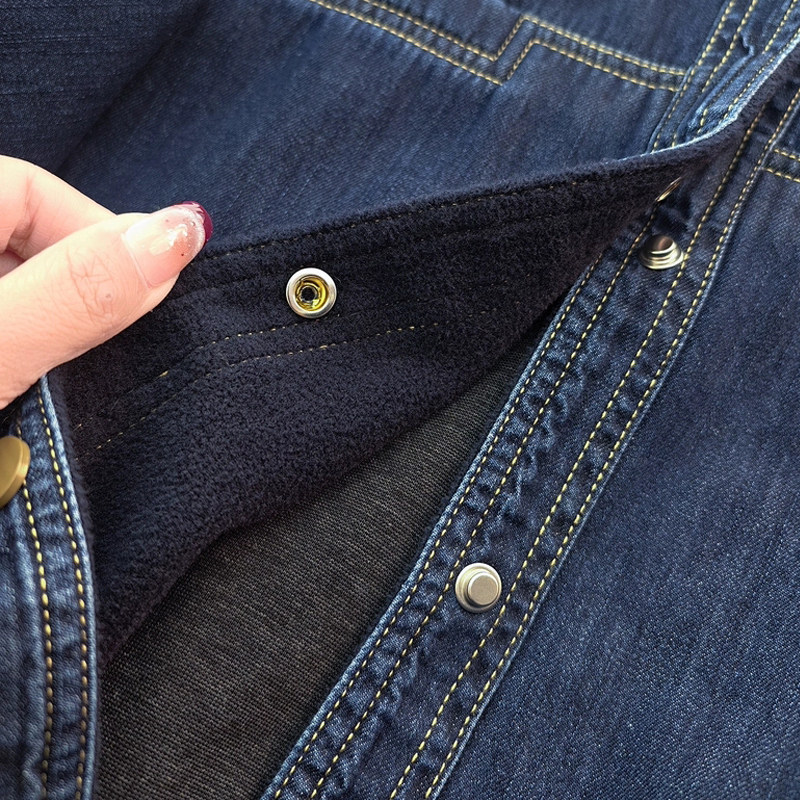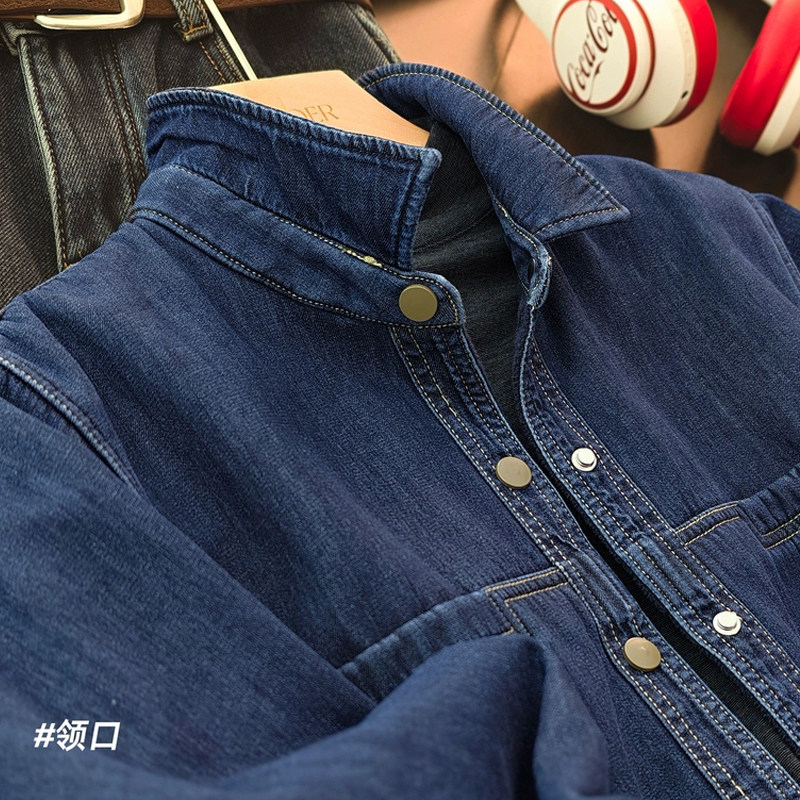 复古深蓝色牛仔加绒衬衫