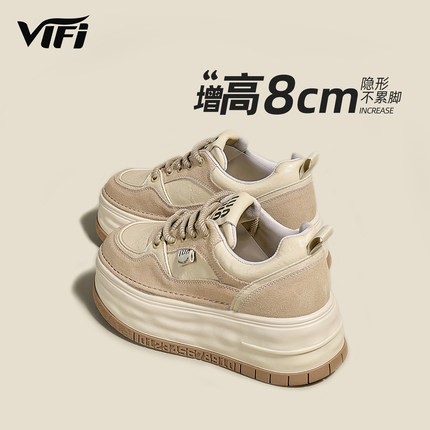 厚底加绒女鞋松糕德训鞋2025秋冬季新款百搭休闲小个内增高运动鞋