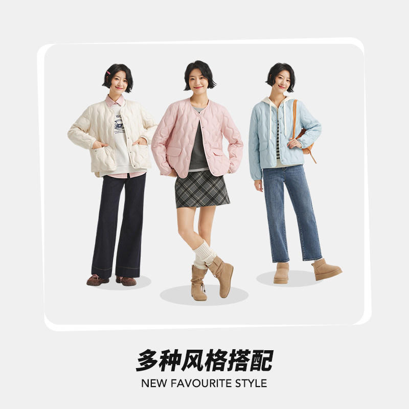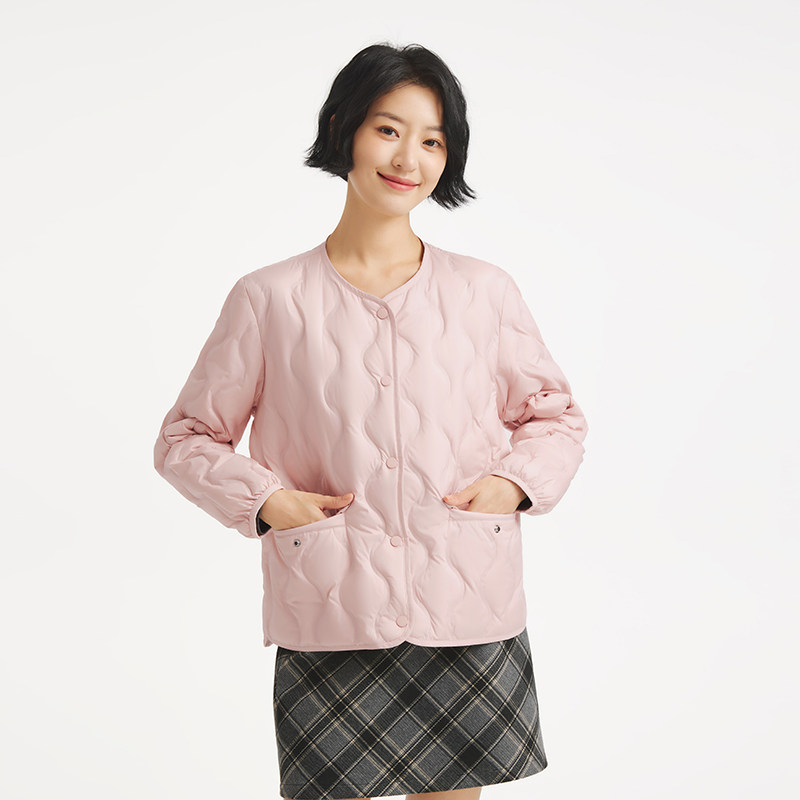 热风女士轻薄羽绒服外套2025年冬季新款圆领羽绒服叠穿内搭上衣