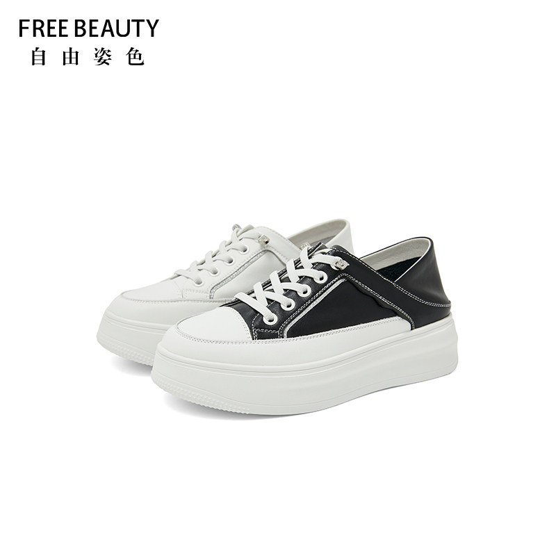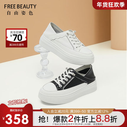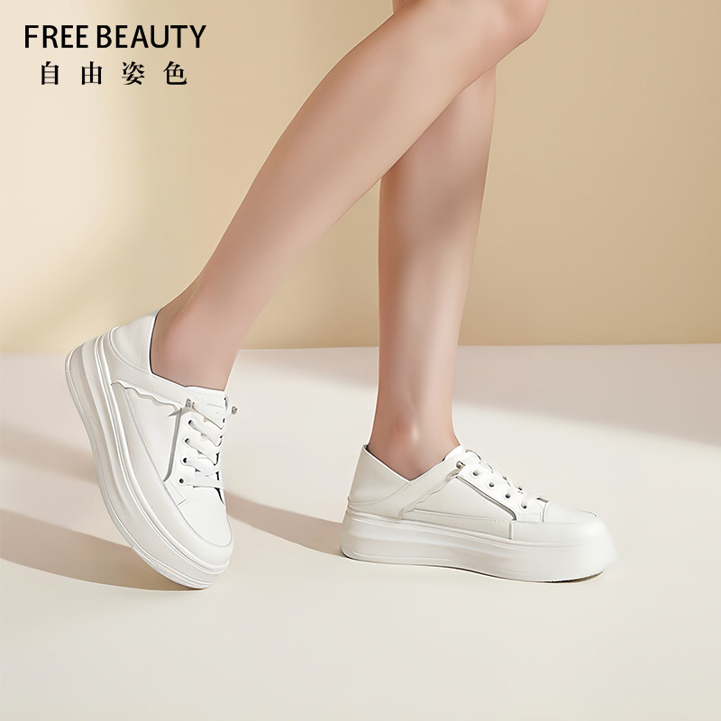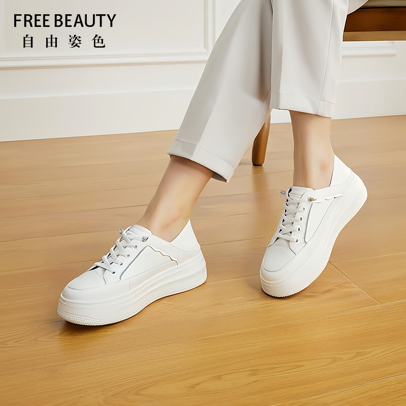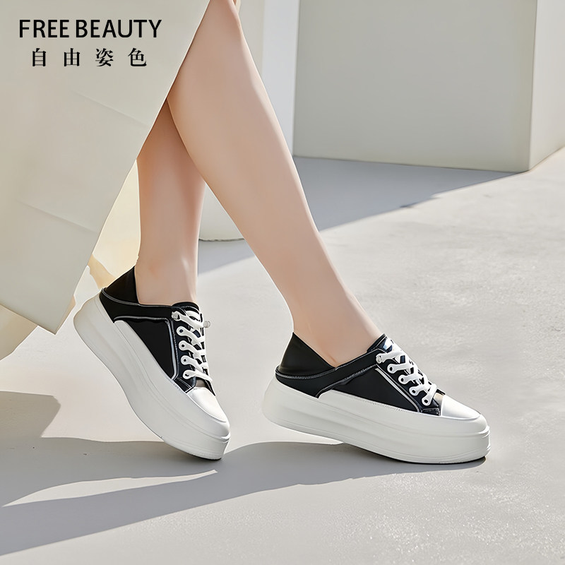 商场同款25年春秋季新款自由姿色免系带厚底鞋两穿可踩休闲小白鞋