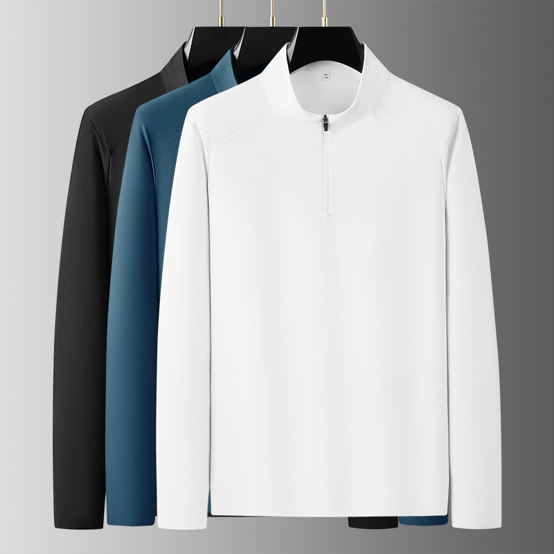 高端轻运动半拉链立领卫衣男长袖秋季抗皱弹力休闲内搭棉感打底衫