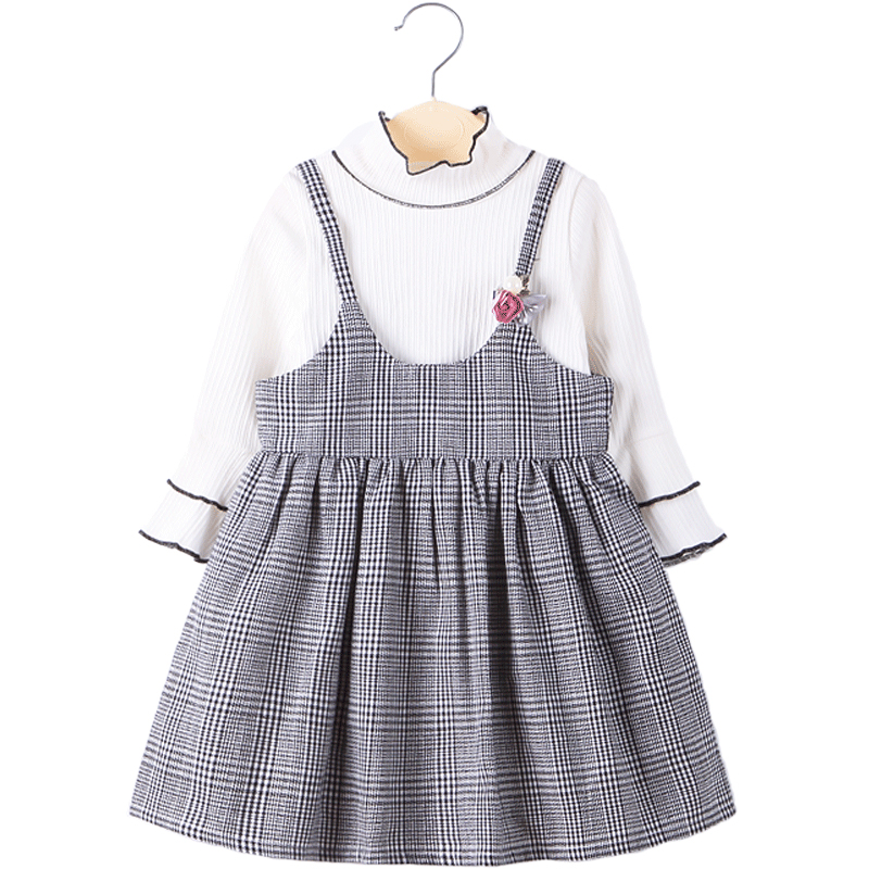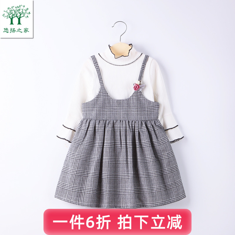 女宝宝连衣裙套装秋装背带裙v一三5四岁女童春秋长袖T恤裙子两件