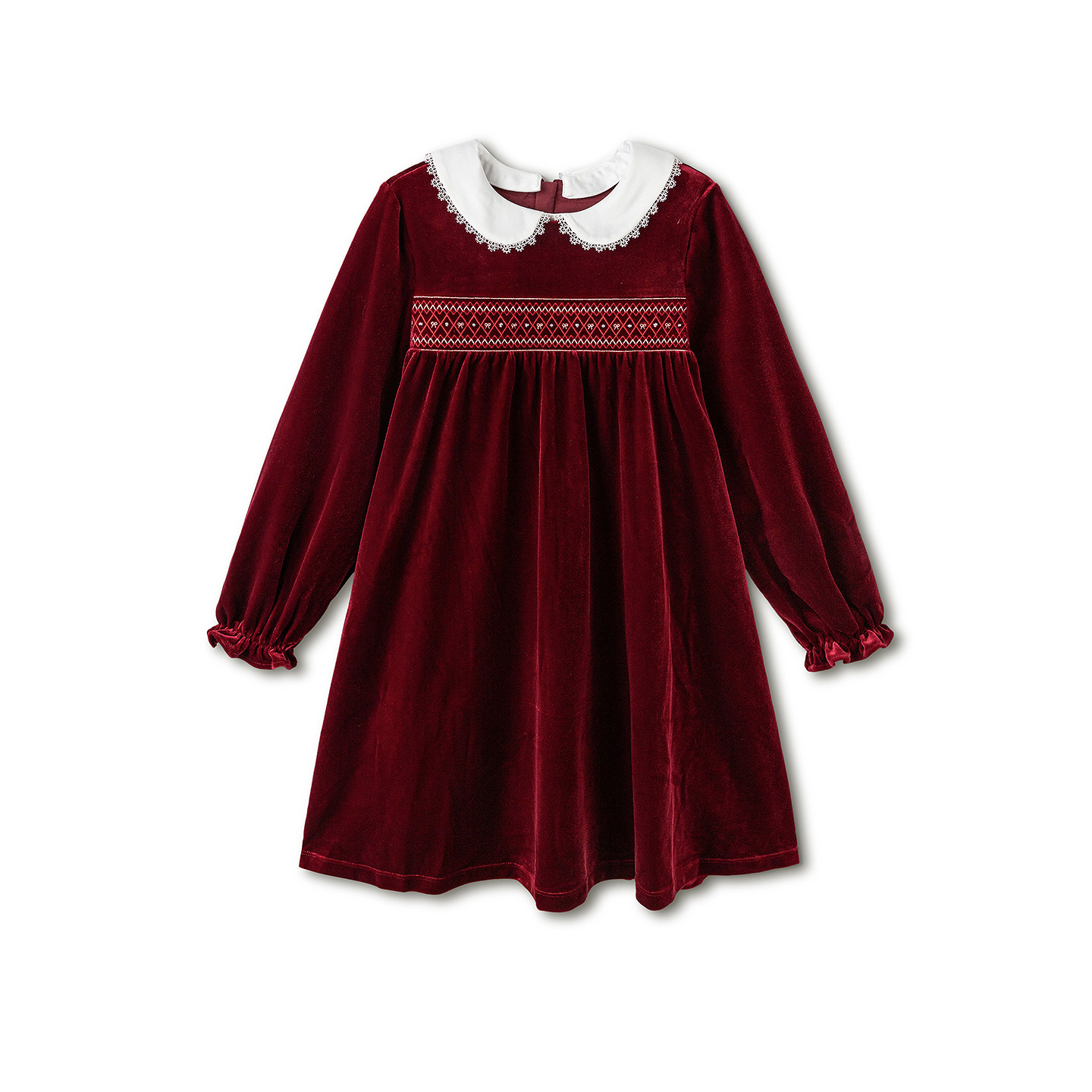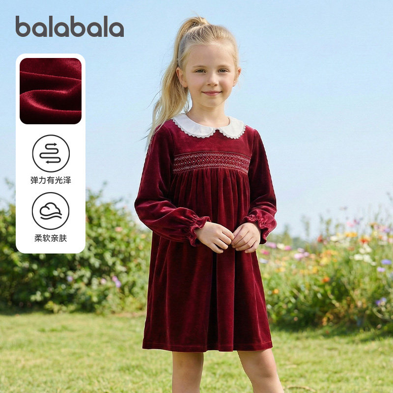 巴拉巴拉儿童连衣裙女童丝绒公主裙中大童娃娃领裙子2026春装新款