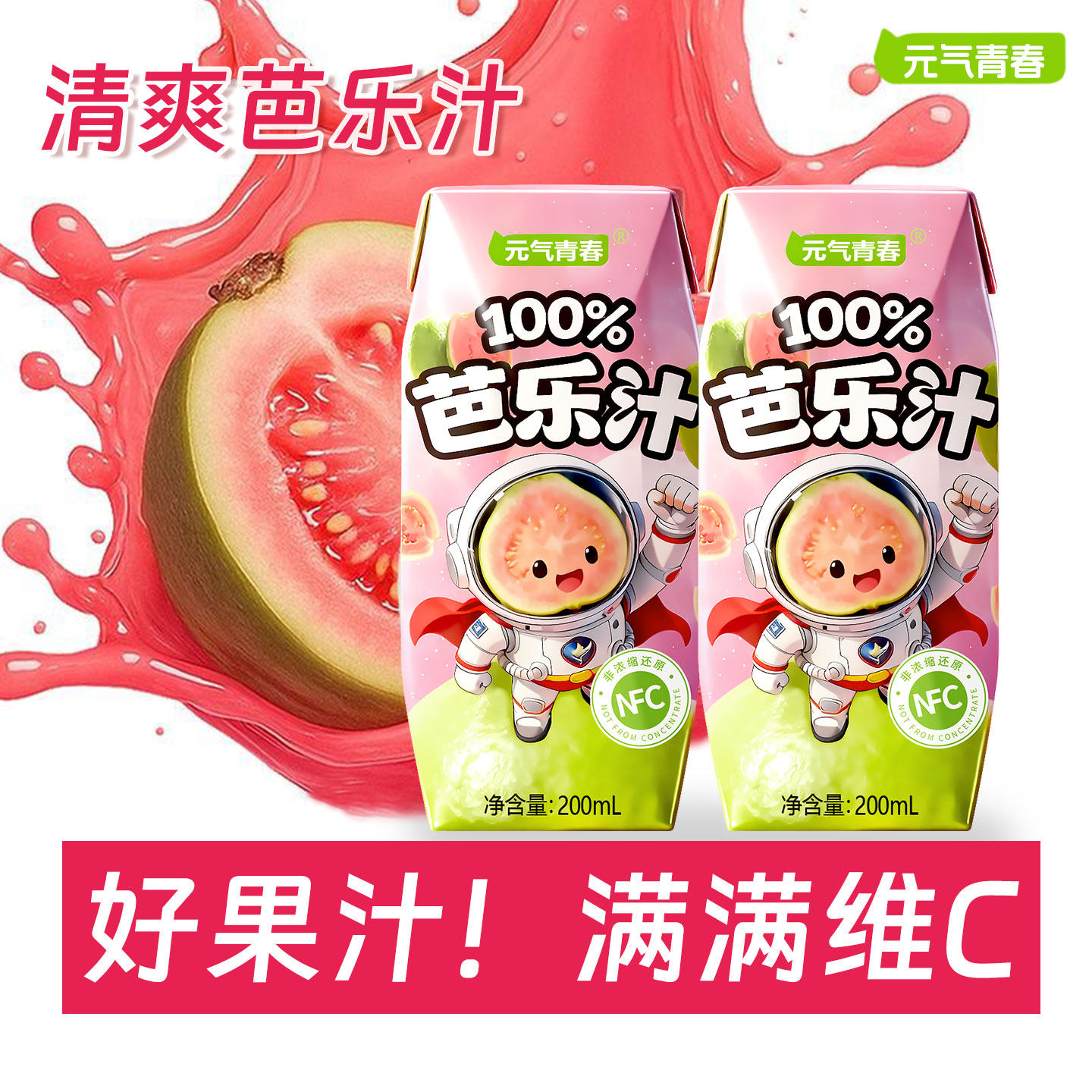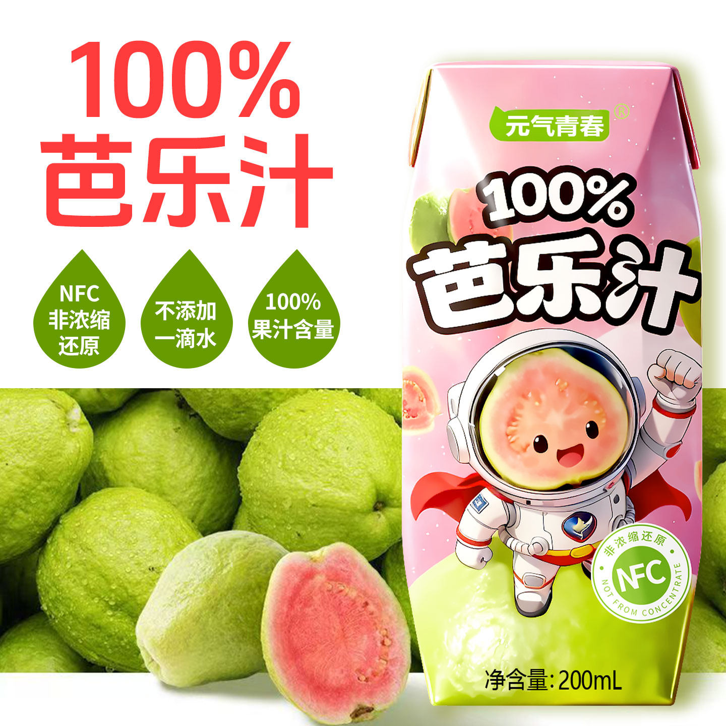 【爆款特价】100%NFC芭乐汁200ml纯果汁无添加清爽解腻整箱批发