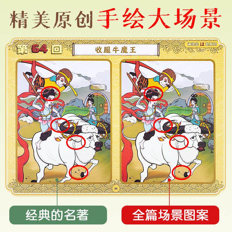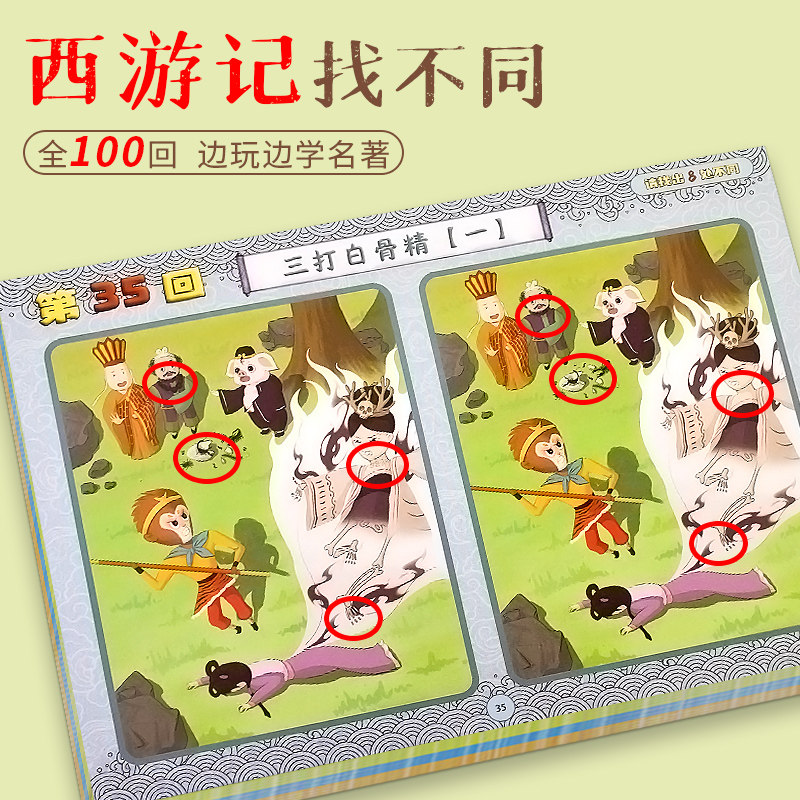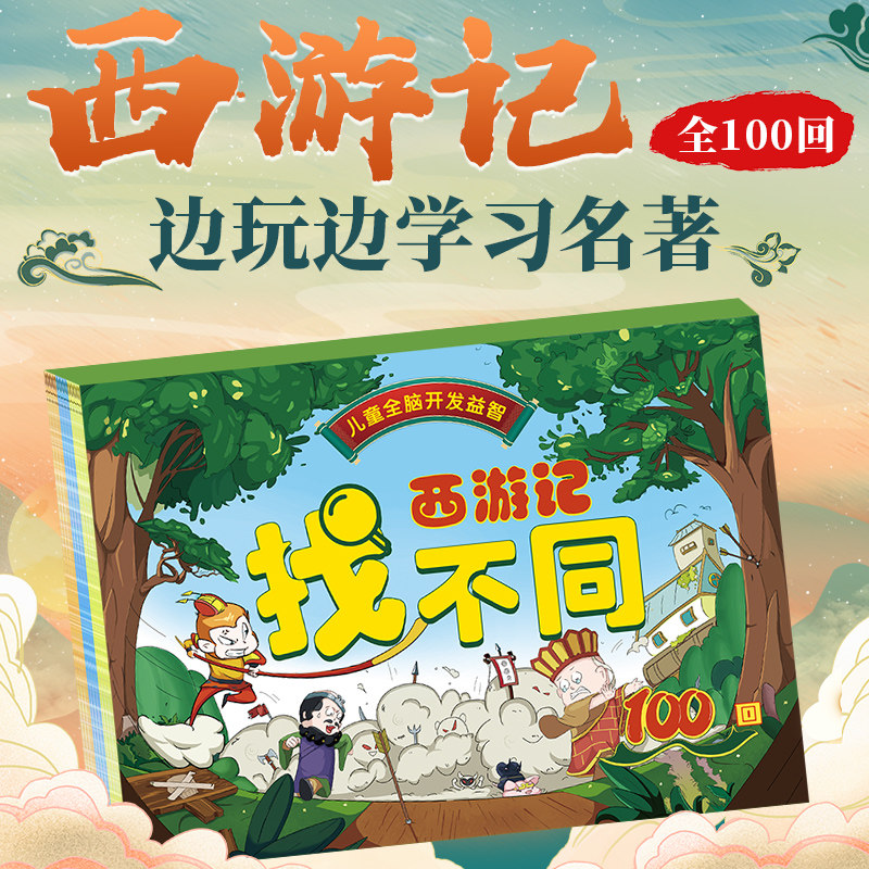 儿童全脑开发益智游戏经典故事西游记找不同场景100回 主题式图画捉迷藏(纸质不可擦)