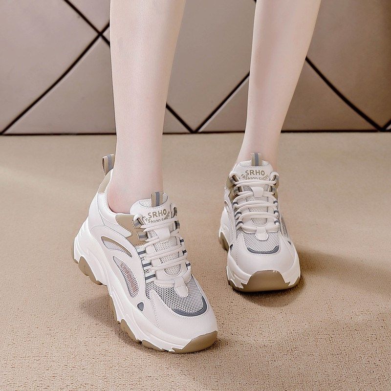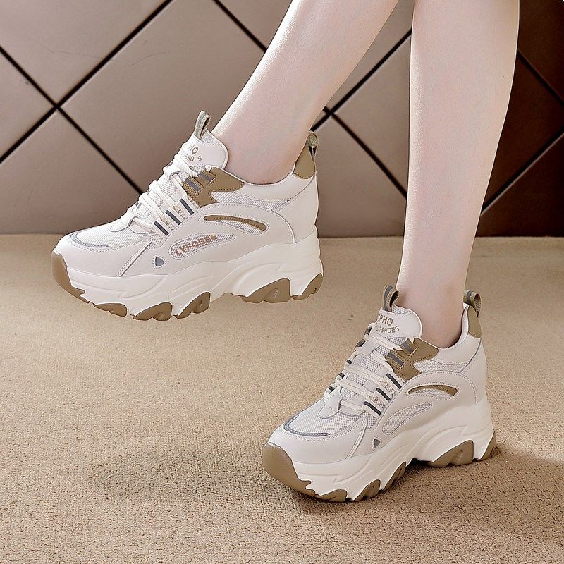内增高老爹鞋女2024秋冬加绒保暖百搭真皮厚底单鞋运动休闲鞋显小
