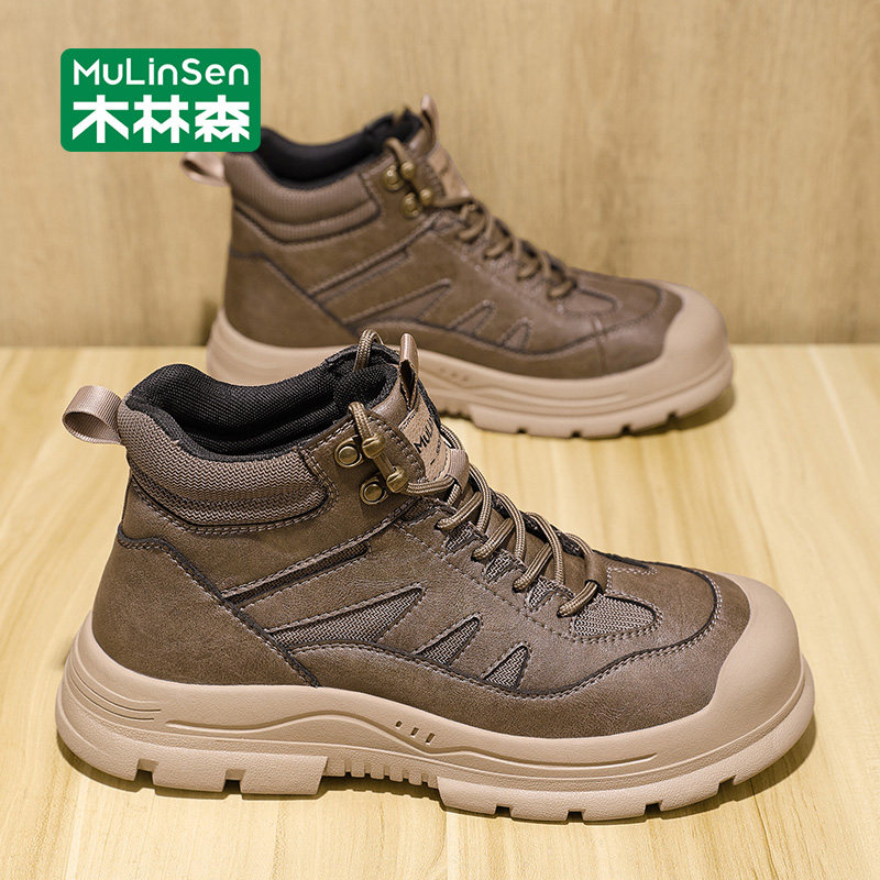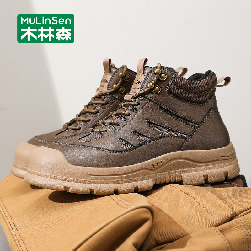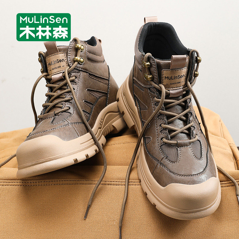 木林森高帮男鞋冬季户外登山工装鞋男厚底耐磨运动皮鞋休闲马丁靴