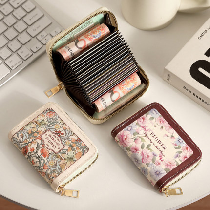梵高花卉风卡包女小众高级感防消磁卡套多卡位可爱小巧零钱包新款