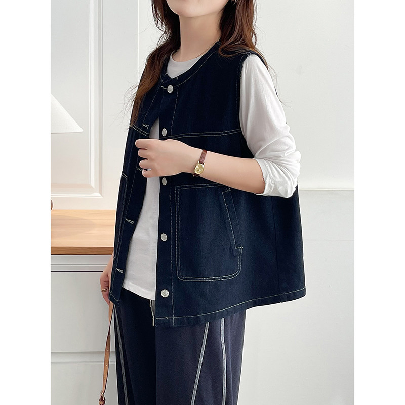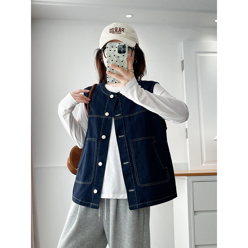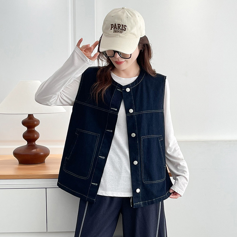 翠袖大码女装2025新款牛仔马甲外套女士秋季宽松显瘦叠穿坎肩背心