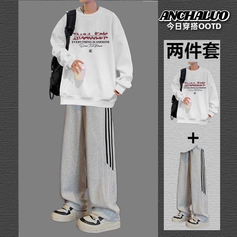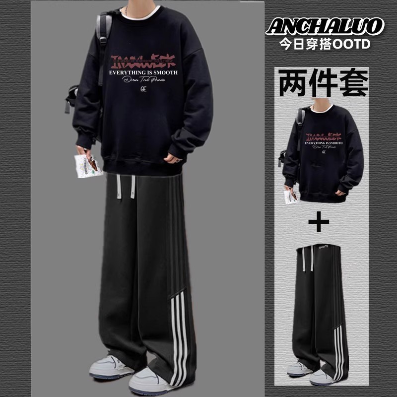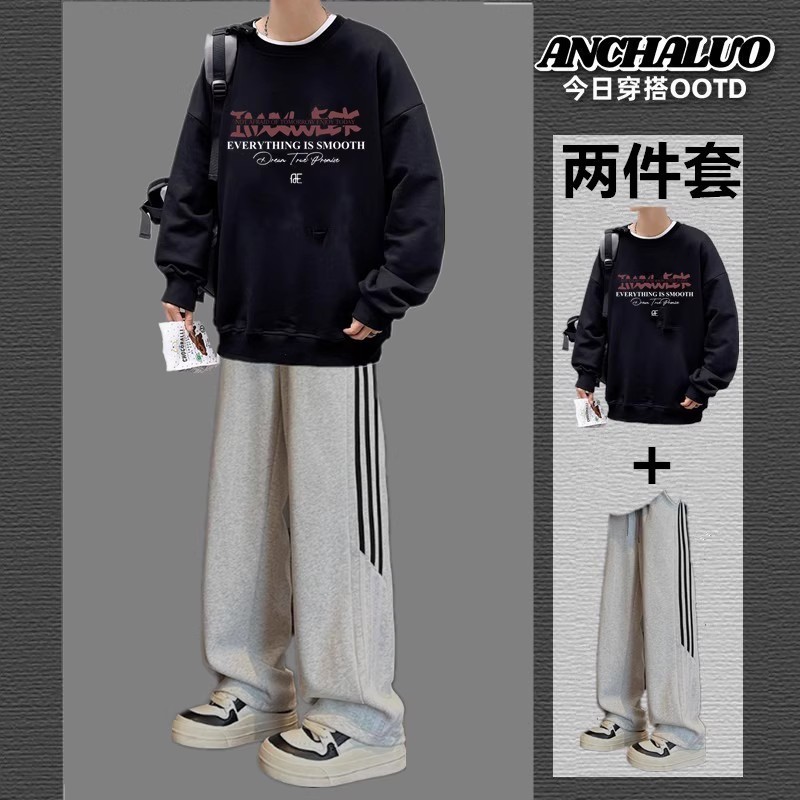 青少年春秋季2025新款圆领卫衣男潮流帅气初高中学生运动休闲套装