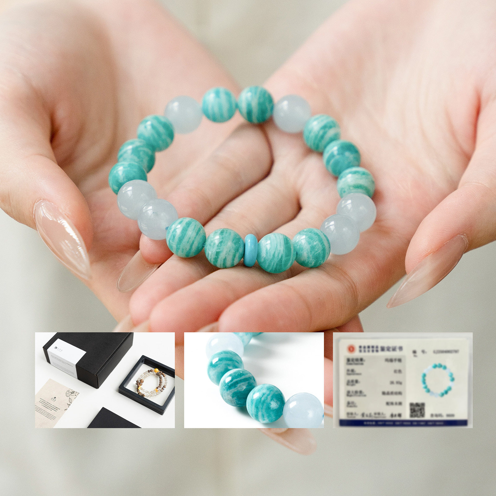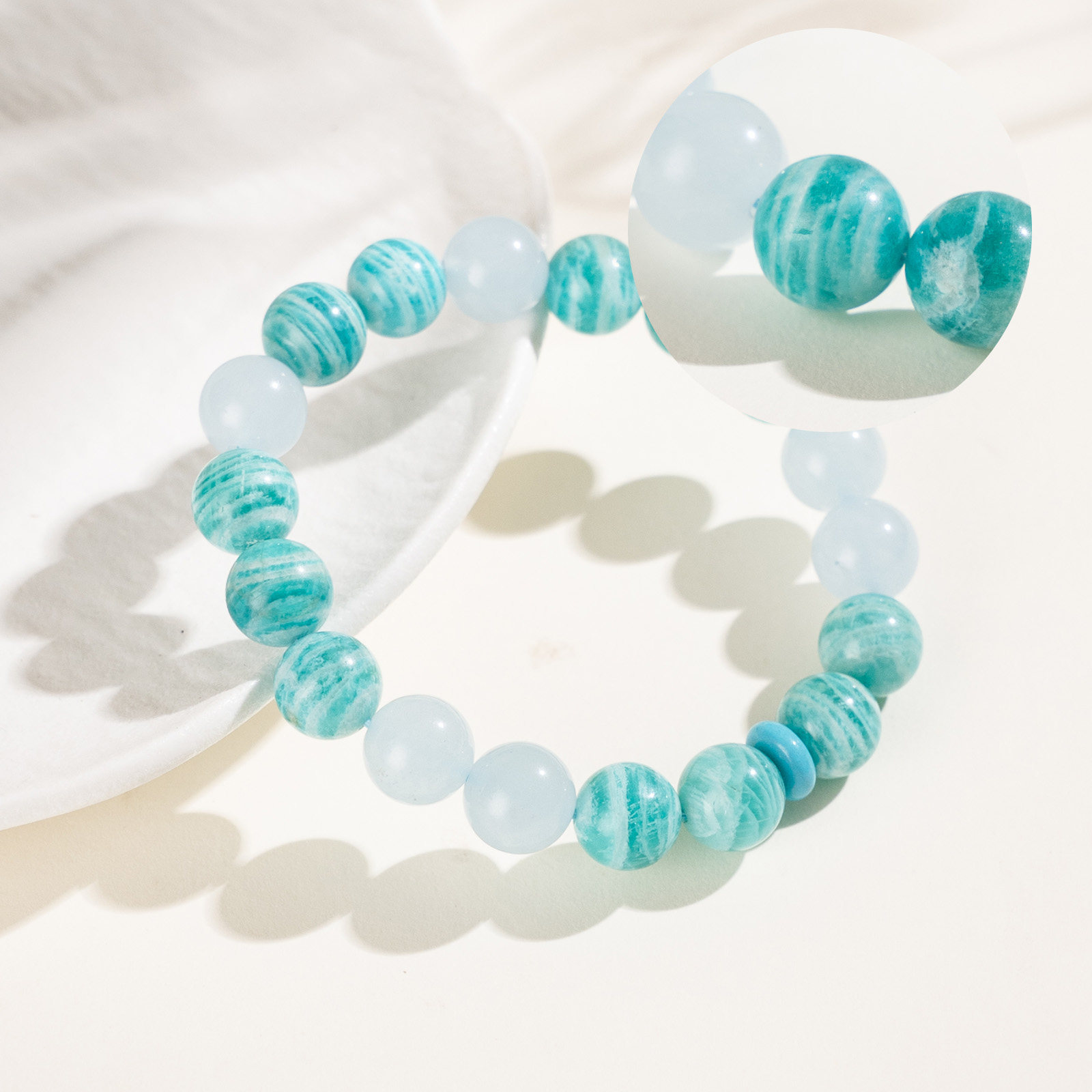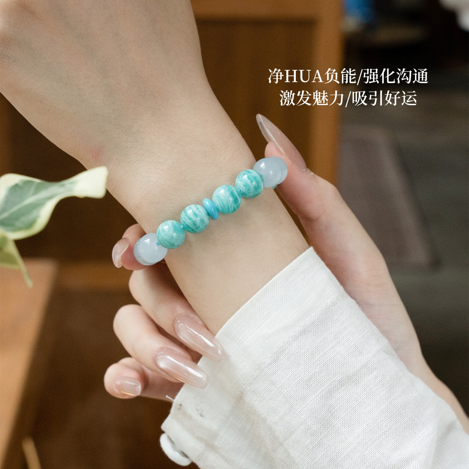 【心旷神怡】天河石海蓝宝石玉髓手串范李李职场减压能量男女手链