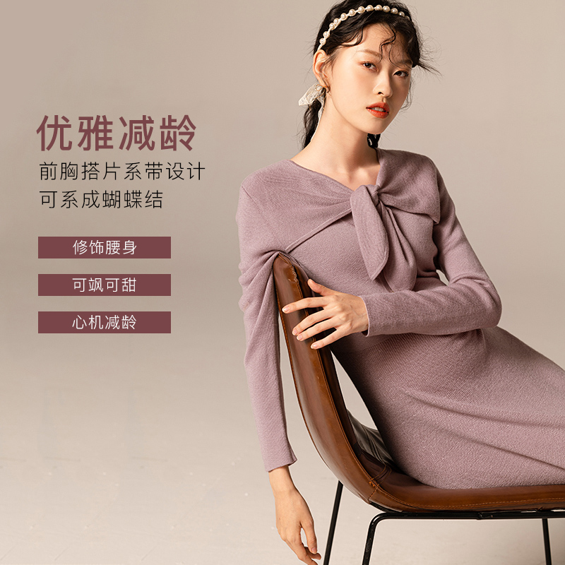 SELLYNEAR高级感孕妇秋冬装新款法式优雅可哺乳针织中长连衣裙