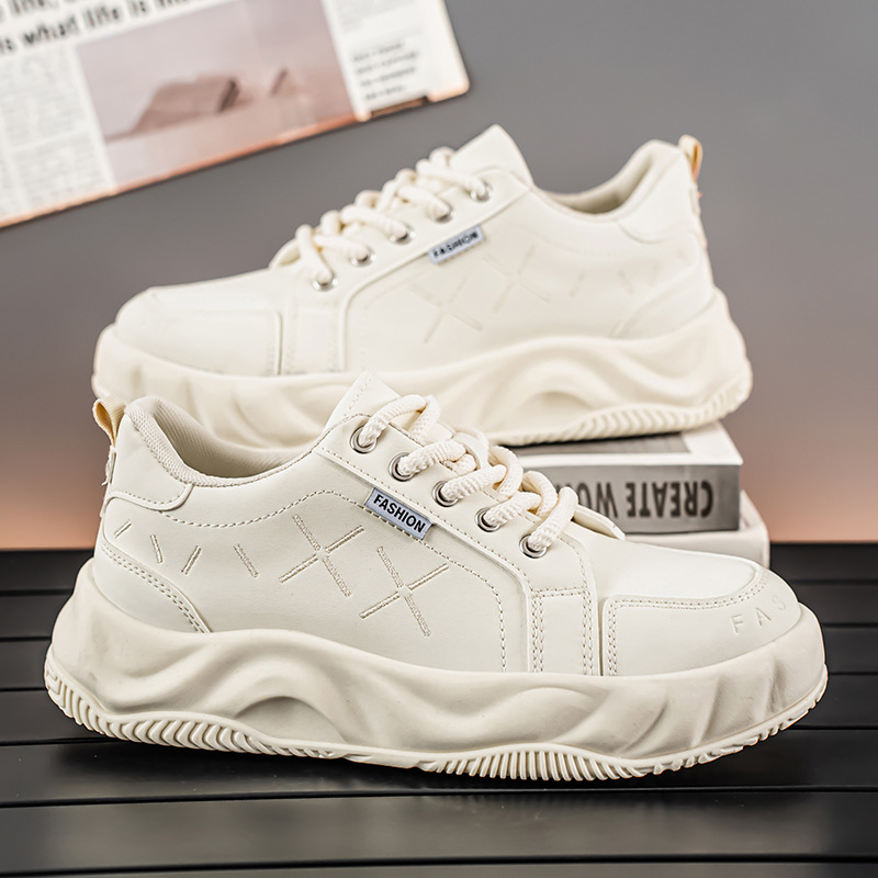 2025新款男鞋透气百搭爆款运动皮面休闲板鞋男款厚底增高防滑潮鞋