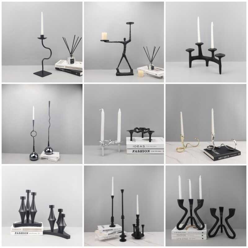 欧式轻奢几何艺术金属烛台摆件客厅卧室I餐厅酒店样板房家居装饰