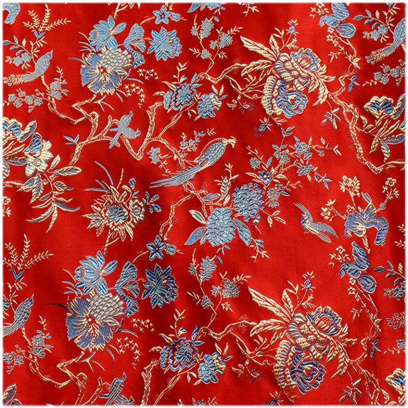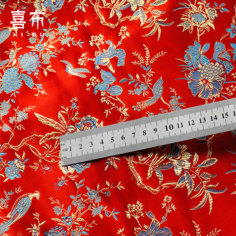 古典配金鸟牡丹提花织锦缎diy布料周岁拜年礼服女连衣裙 服装面料