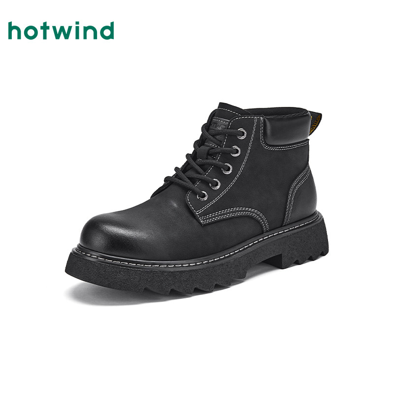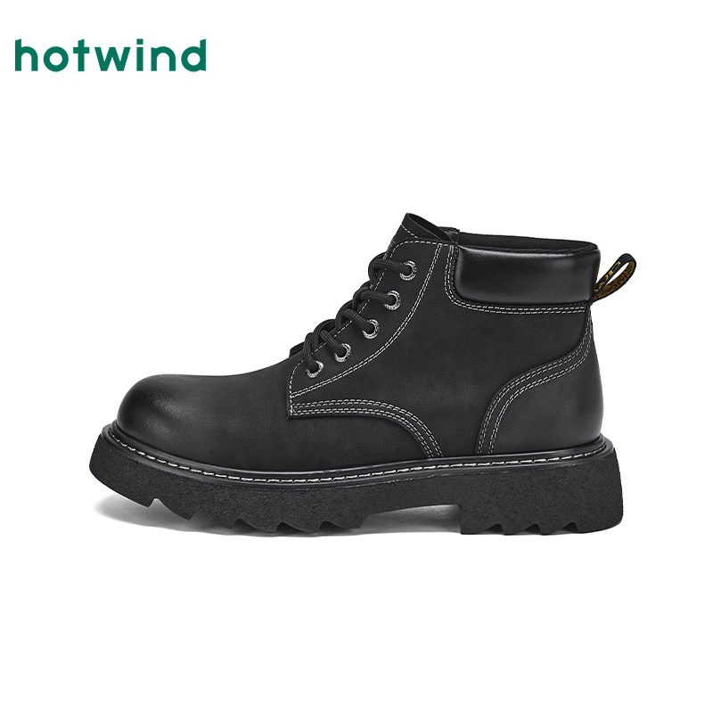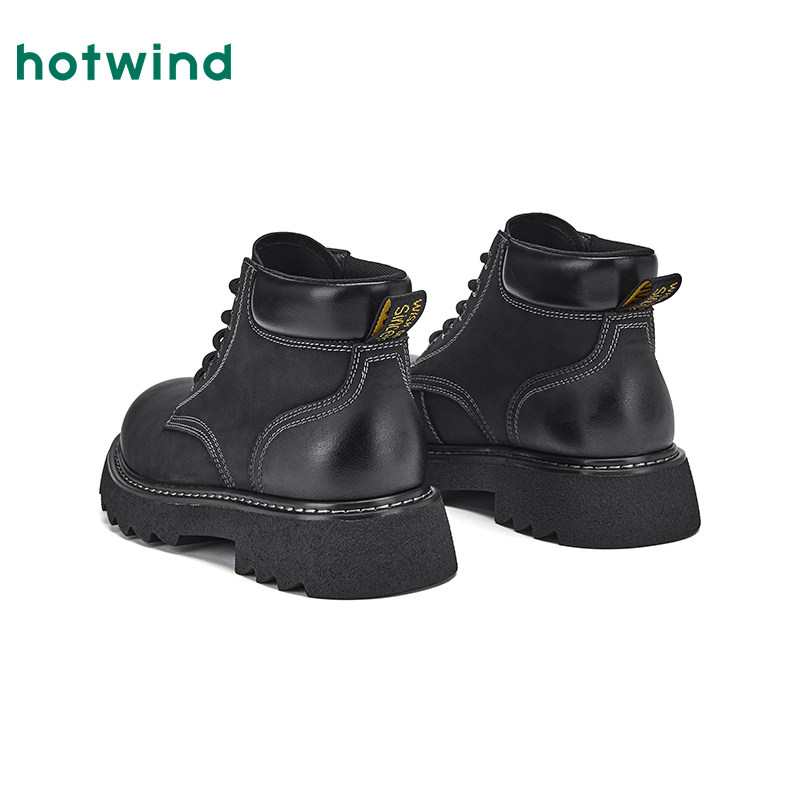 热风男鞋2025冬季新款男士时尚靴子休闲户外马丁靴登山厚底短筒靴