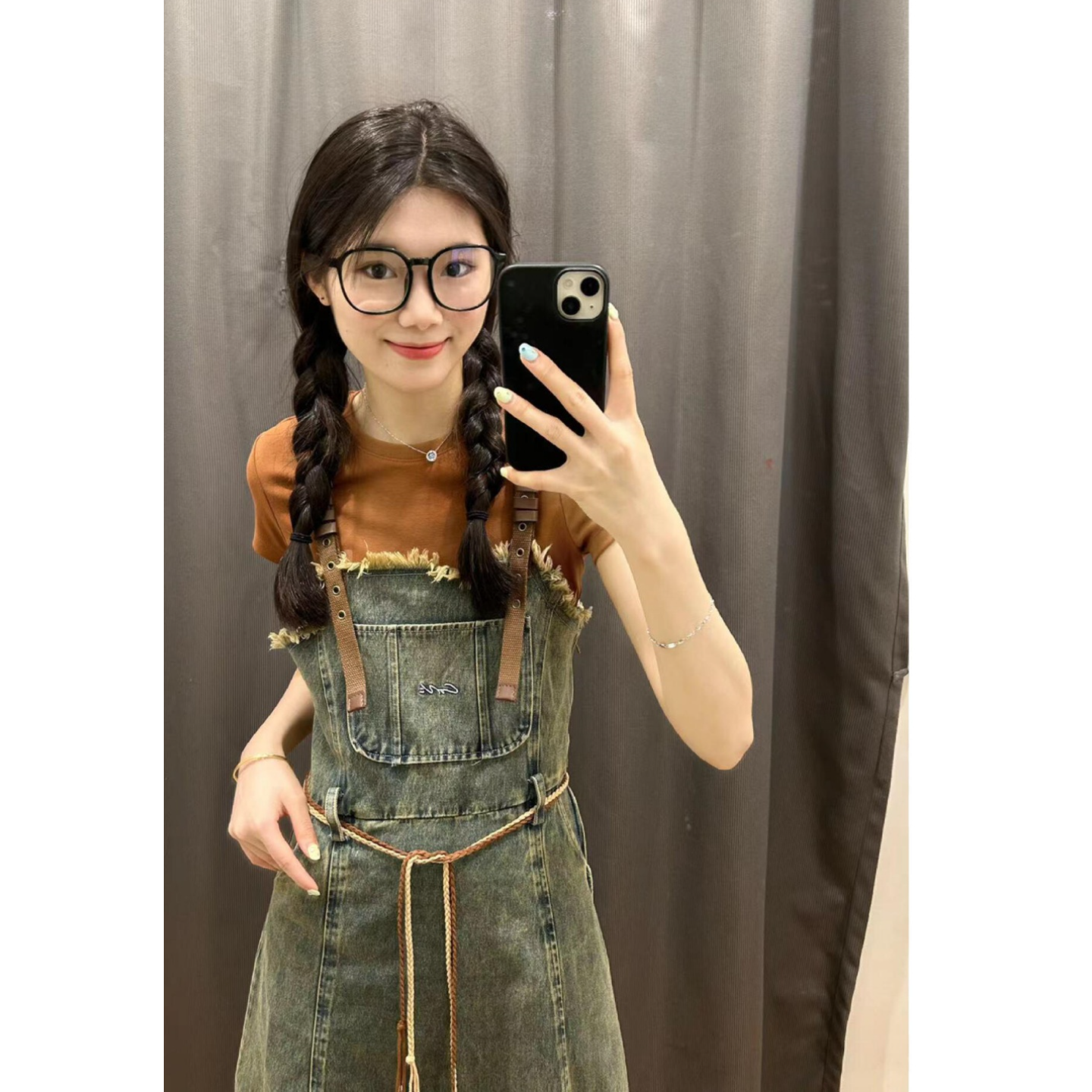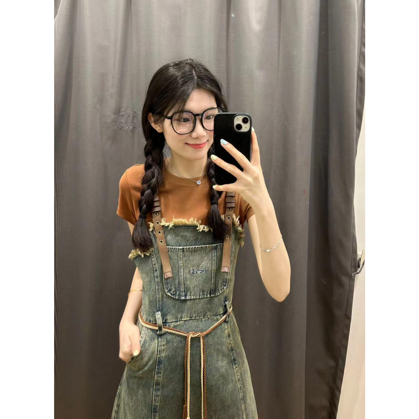 毛边流苏吊带连衣裙女春夏季新品学院风水洗学院风开叉牛仔背带裙