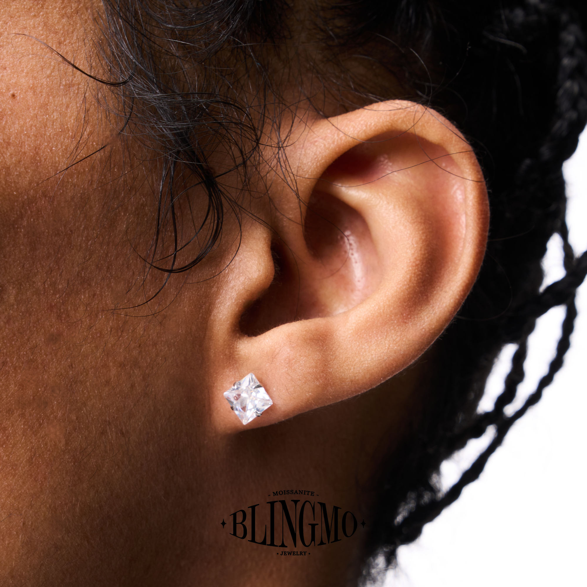BLINGMO S999足银方形钻石纯银耳钉精致超闪男女美式四爪锆石耳钉