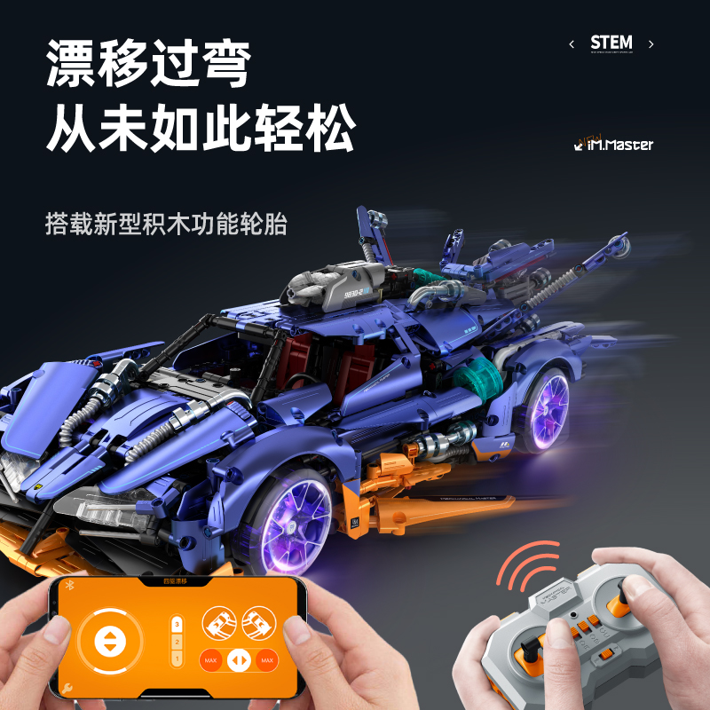 万致电镀阿波罗太阳神跑车积木模型喷雾漂移赛车拼装玩具男生礼物