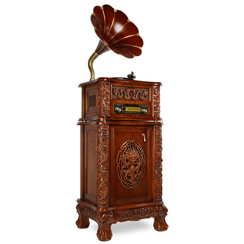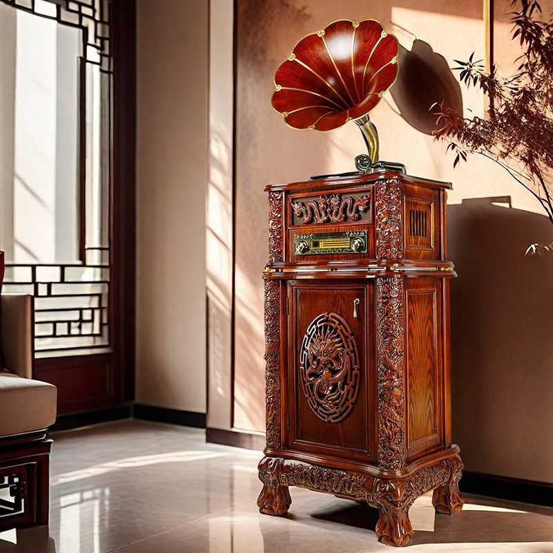 今墨留声机客厅中式黑胶唱片机实木老式仿古流声机复古雕刻龙机