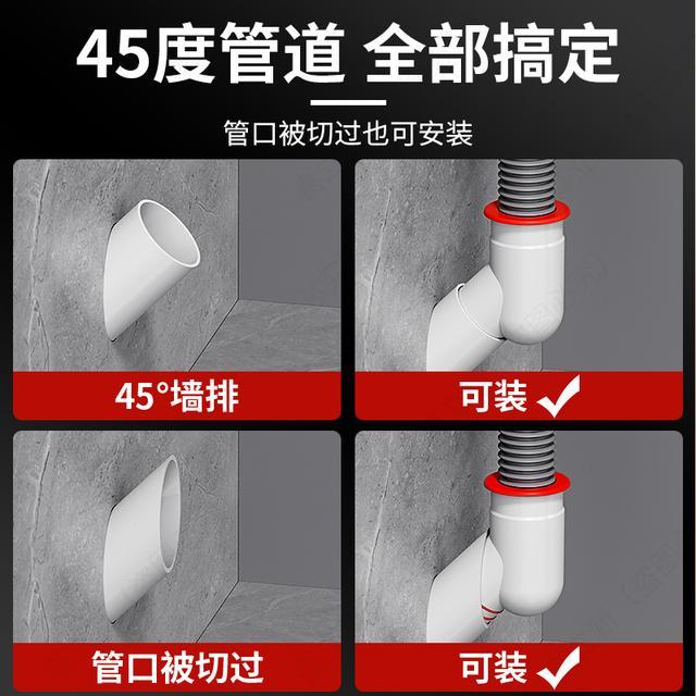 45度墙排下水管三通斜插面盆洗衣机烘干防臭专用接头密封塞下水器