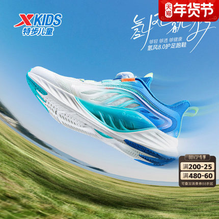 氢风8.0特步童鞋男童运动鞋2025新款网面透气儿童跑步鞋旋转纽扣