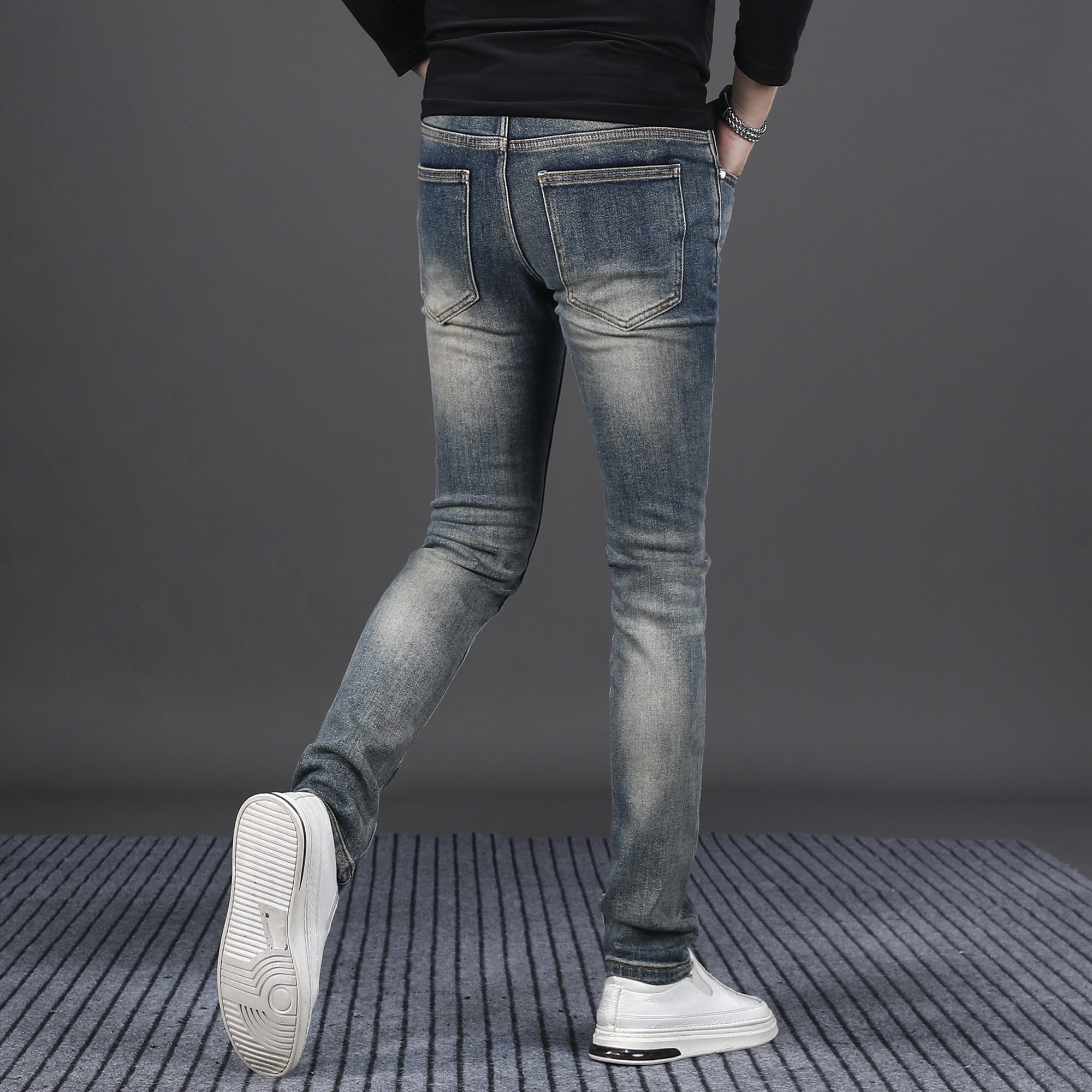 欧版高端复古蓝牛仔裤男秋季2025新款修身小脚潮牌潮流男士裤子厚