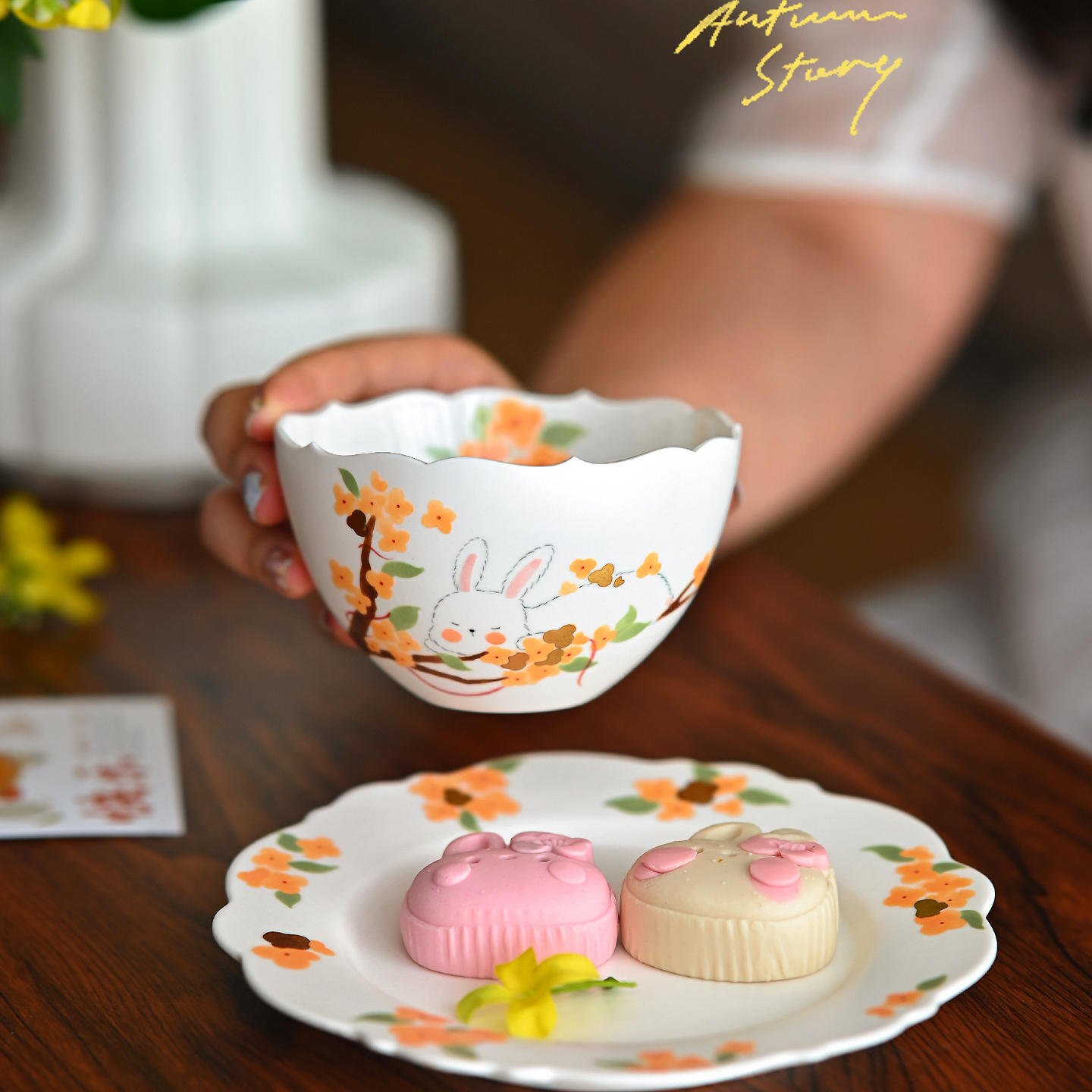 玺闻乐见陶瓷中秋兔子咖啡杯桂花