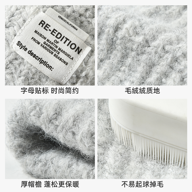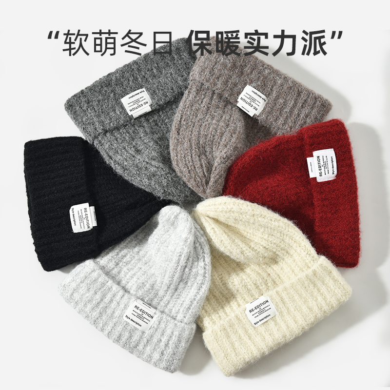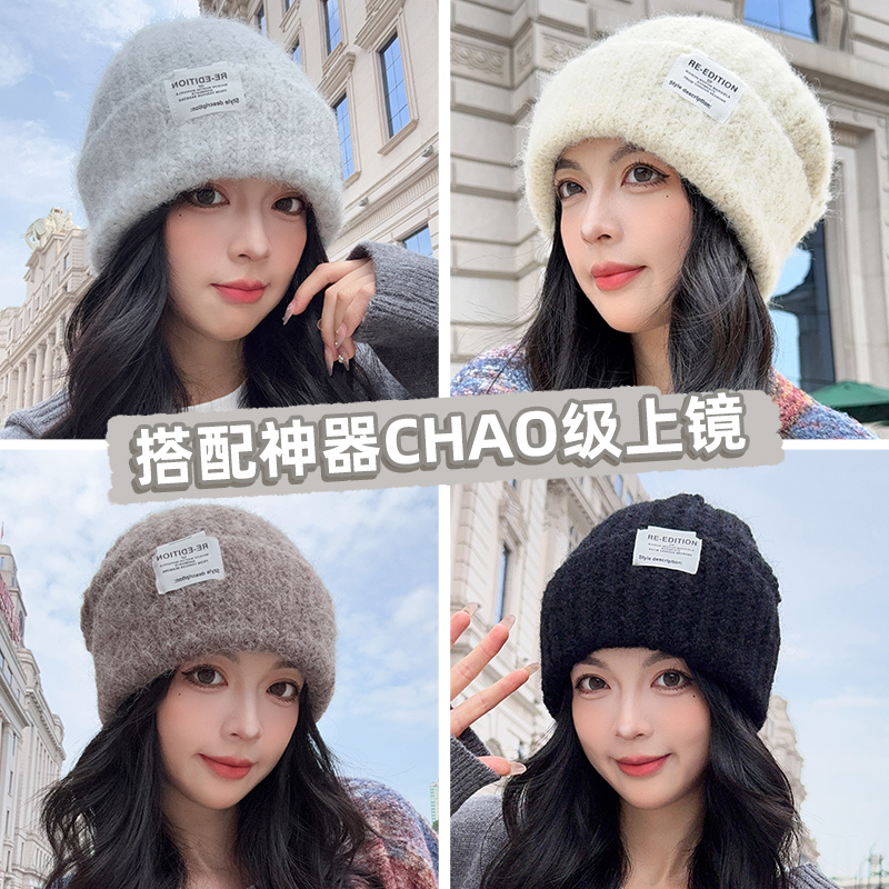 帽子女秋冬2025新款毛线帽显脸小贴布保暖针织帽大头围护耳包头帽