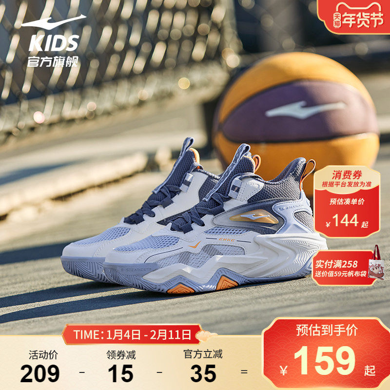 【于适应援色】奇袭1|鸿星尔克儿童专业篮球鞋网面实战防滑运动鞋