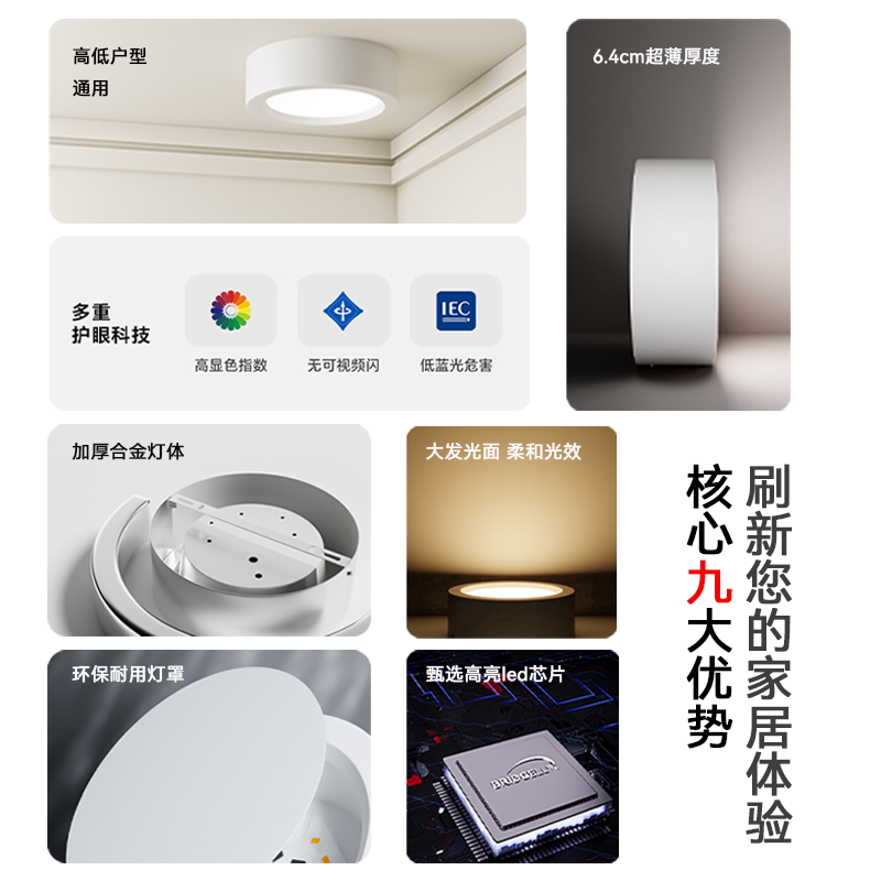 明装胡桃木筒灯免开孔吸顶客厅卧室玄关背景走廊过道led天花射灯
