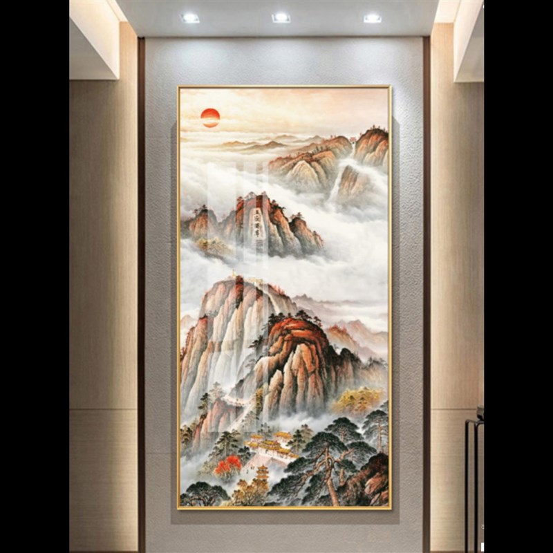 有山无水画靠山图入户玄关过道风水招财挂画旭日东升泰山日出图竖