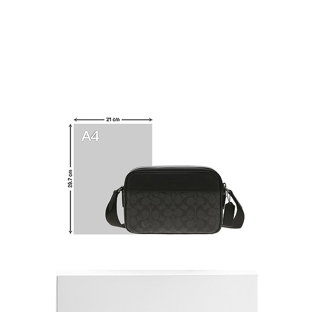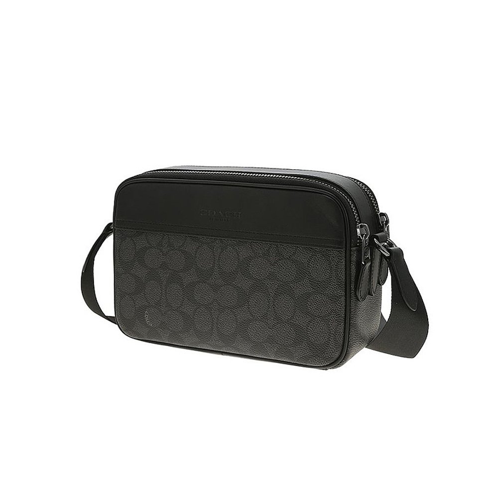 香港直邮Coach蔻驰 奥莱款男士PVC配皮单肩斜挎相机包CV921QBMI5