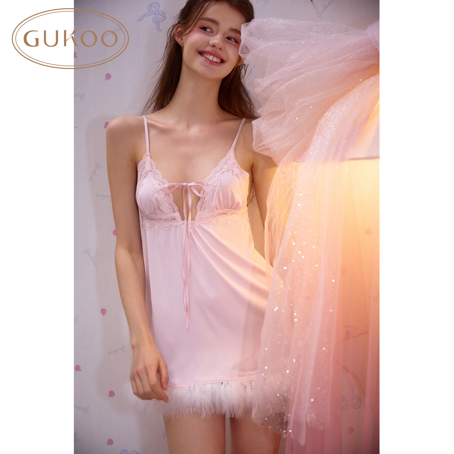 Gukoo/果壳睡裙女纯色蕾丝性感女士家居服情趣睡裙E