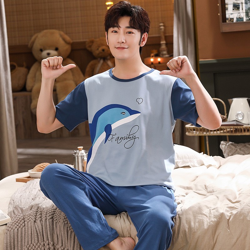 青少年睡衣男孩子夏季短袖长裤纯棉大童男15-K16-17岁初中学生套