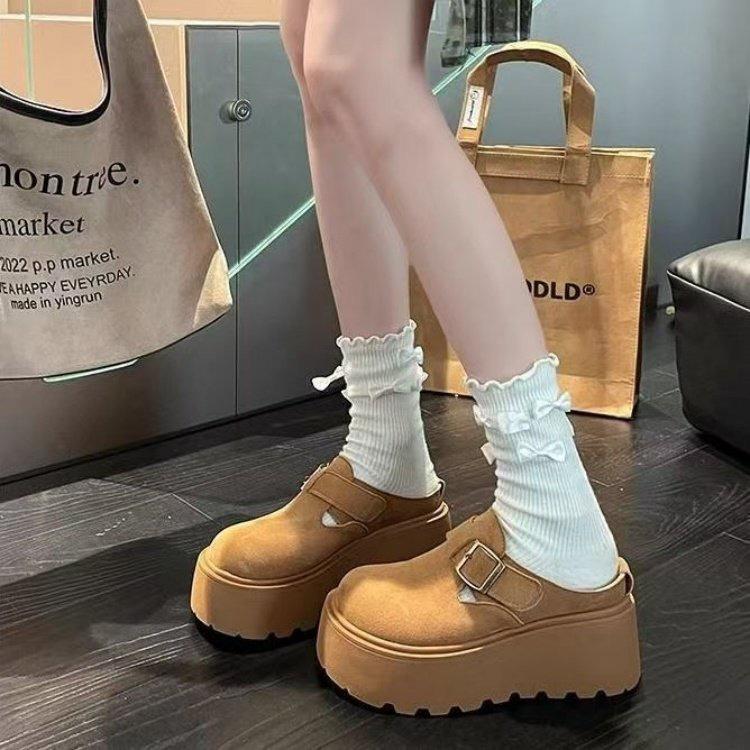 复古厚底勃肯包头半拖鞋女外穿2025秋季新款百搭一脚蹬懒人博肯鞋