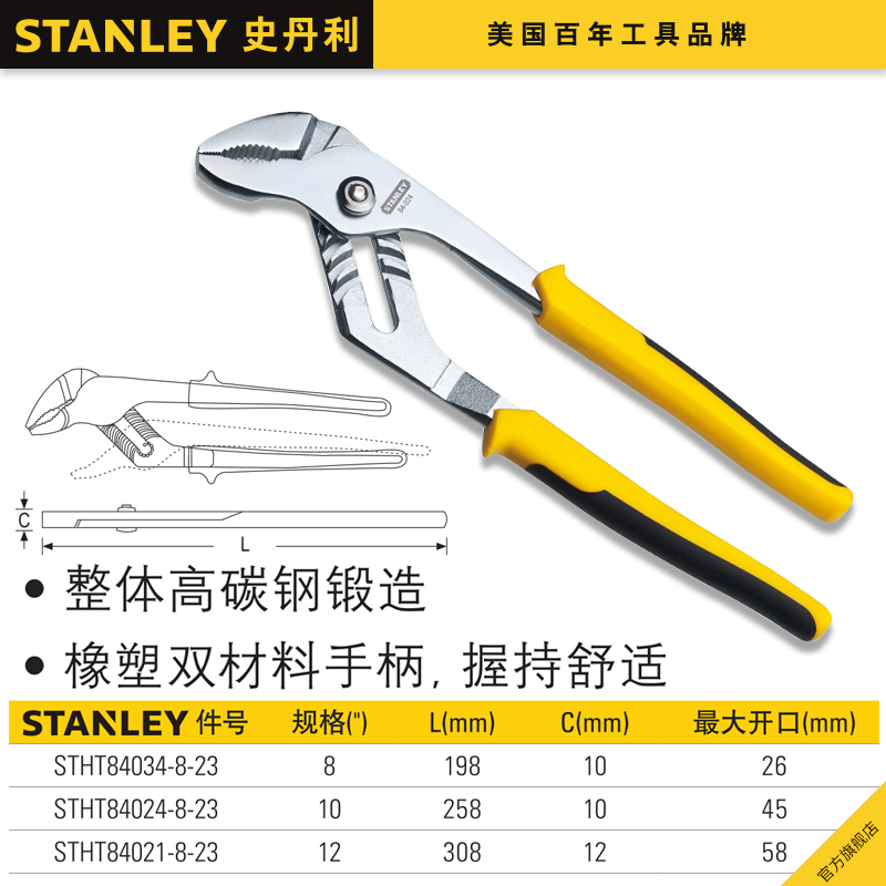 史丹利大力钳水泵钳8/10/12寸可调式多功能钳钳式工具水管钳