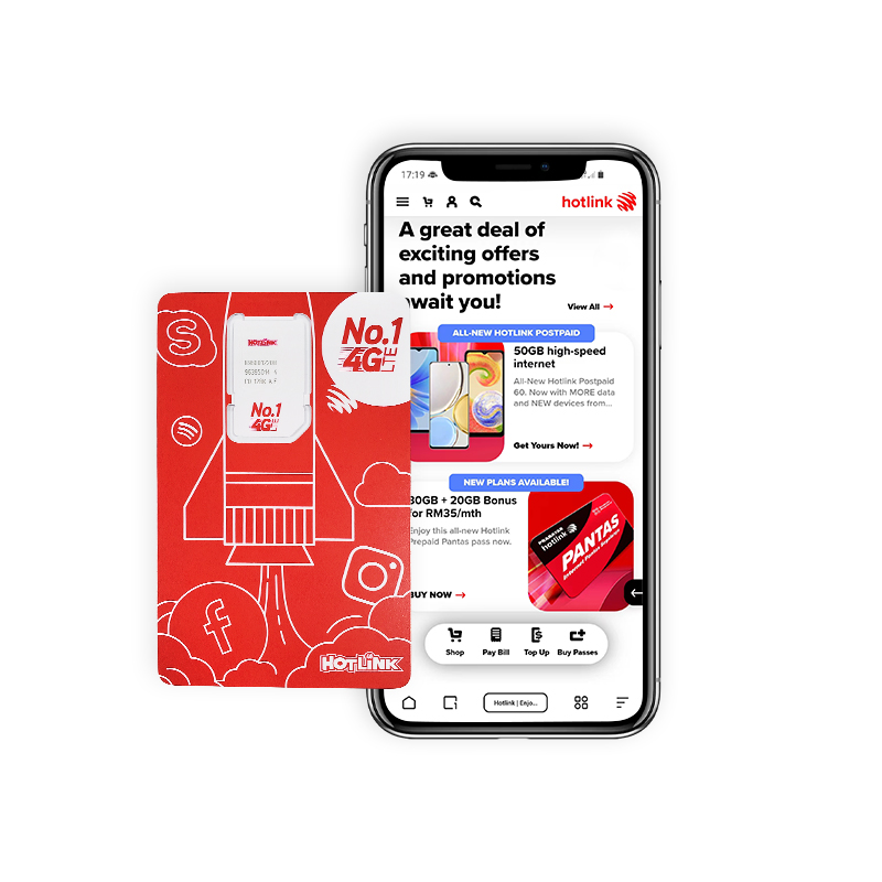 马来西亚电话卡hotlink手机上网卡4G/5G可选100GB流量5/6/7/29天