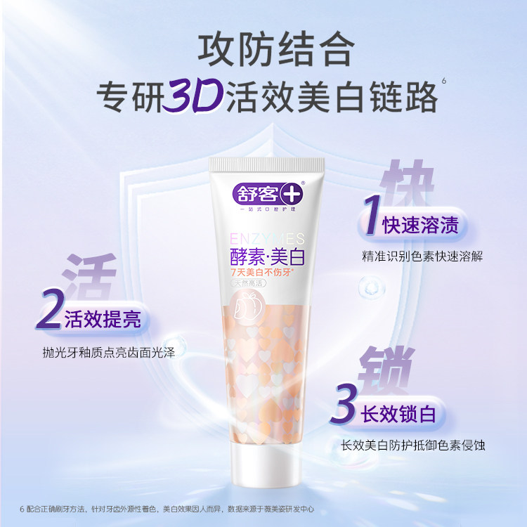 屈臣氏舒客精研美白酵素牙膏120g*3炫白清新口气清洁口腔去渍