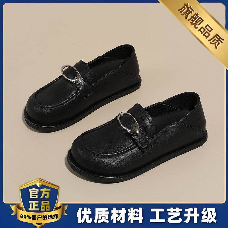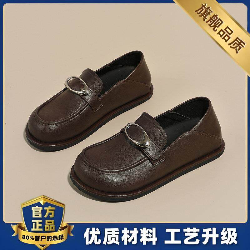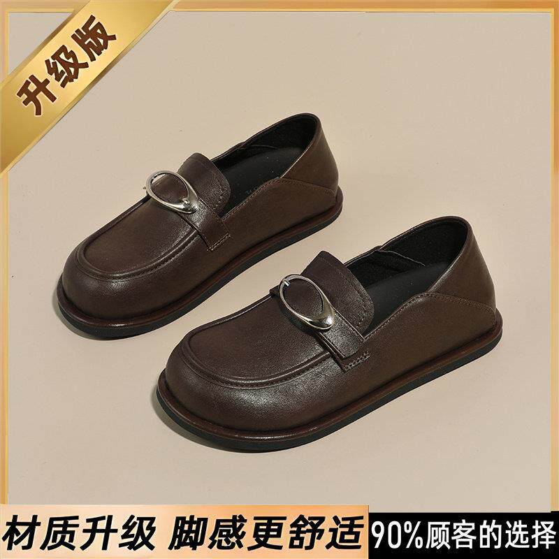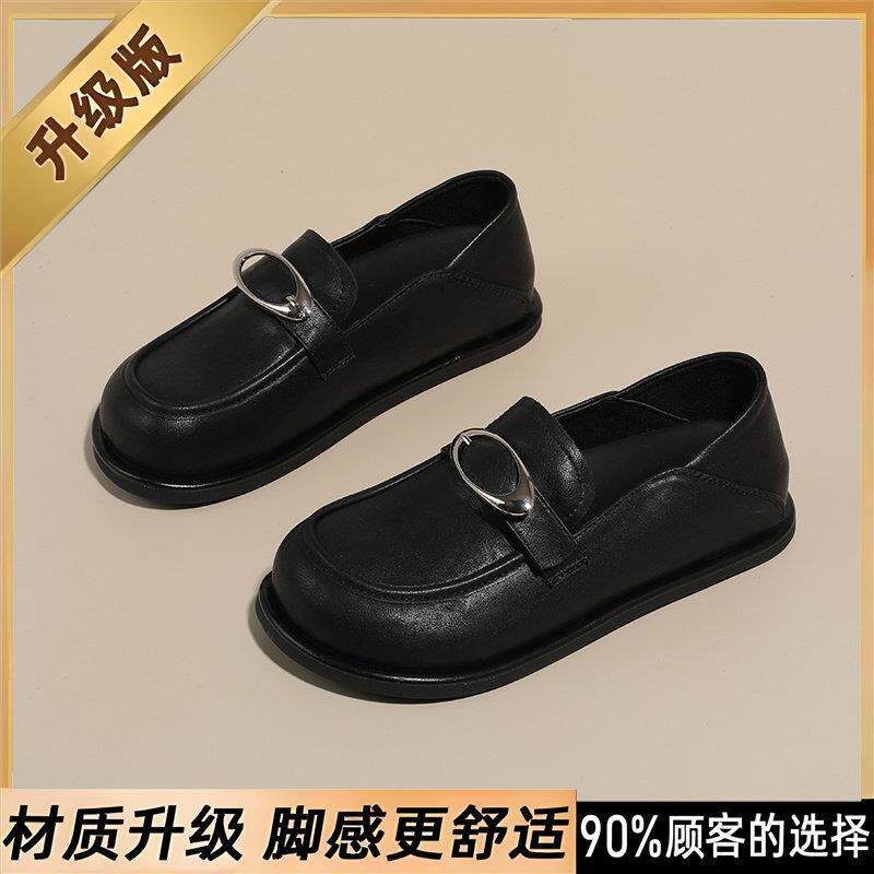 春夏女单鞋可脚两穿薄底通勤小皮鞋2026新款宽胖脚宽头百搭0304k
