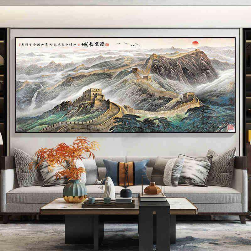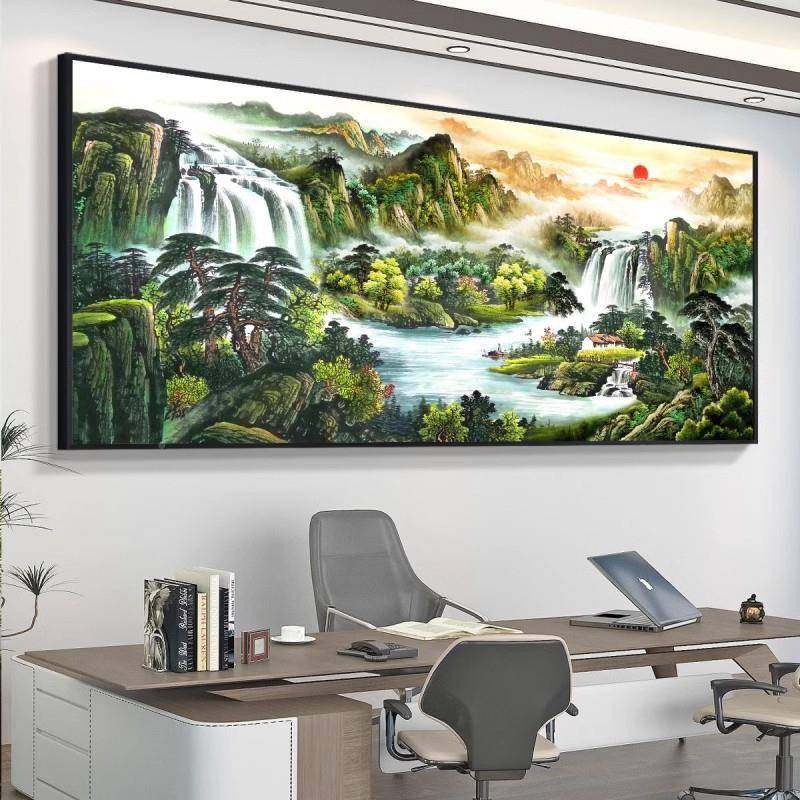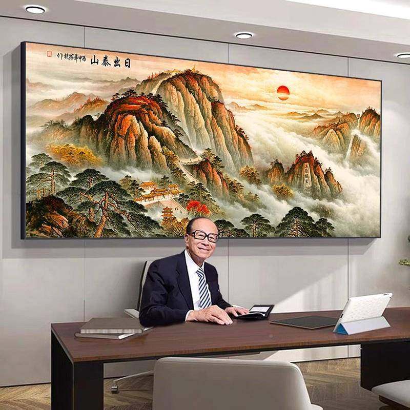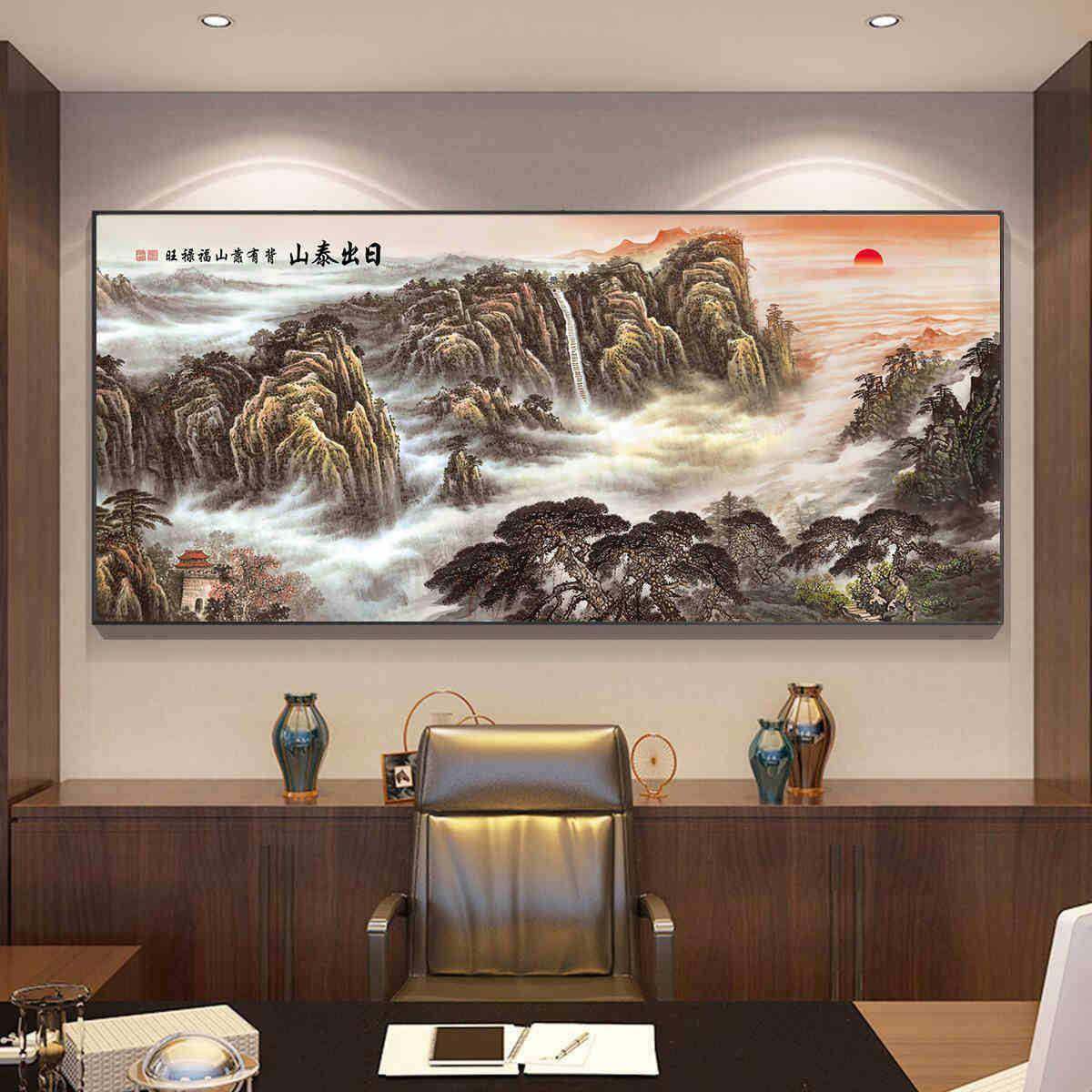 泰出办公室画客厅茶室背景山日墙山水画国画挂新中式靠山JJ909059