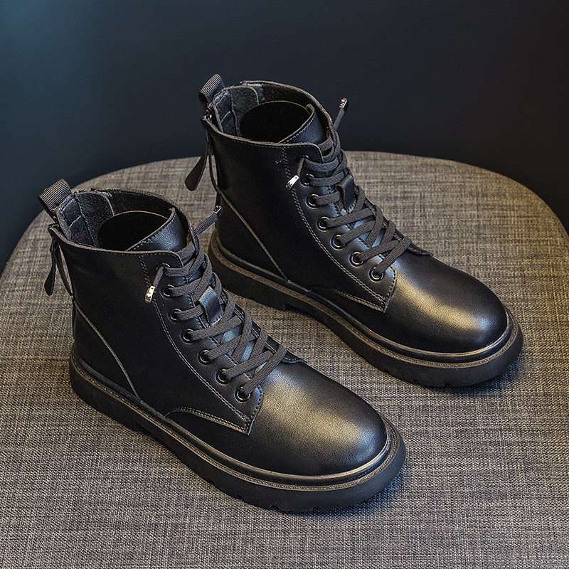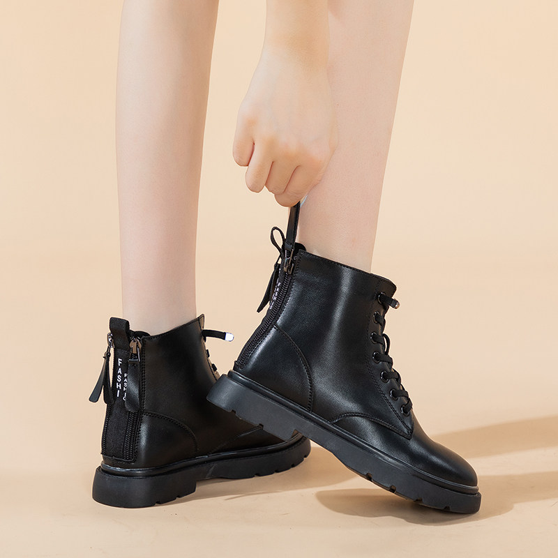 2025新款真皮马丁靴女英伦风春秋单靴百搭大码女靴41-43平底短靴