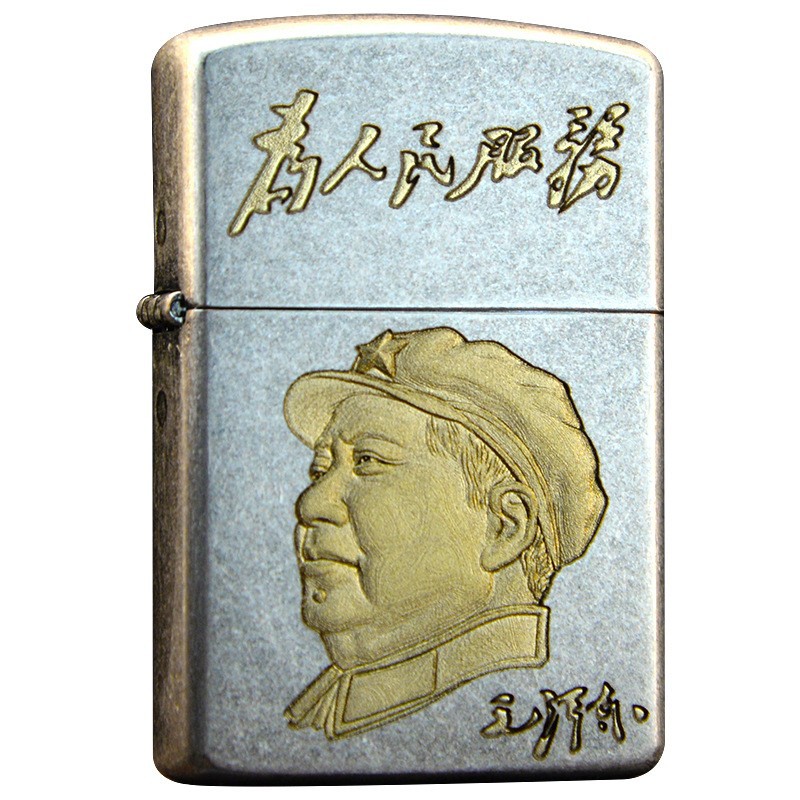 包邮创意佐罗黄铜煤油打火机双面雕刻古银双色为人民服务个性创意