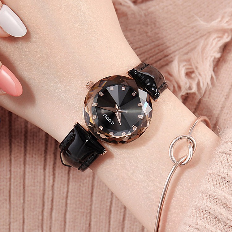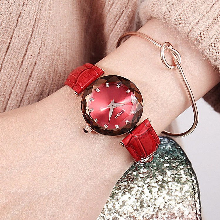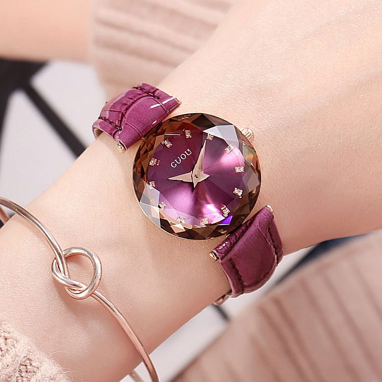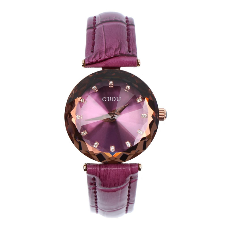 瑞士正品新款古欧时尚女士手表菱形小表盘气质紫色女表皮表时装带