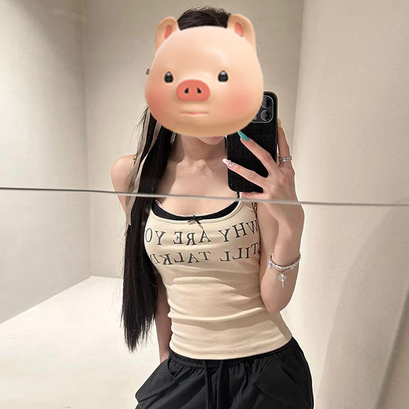 黄色字母印花吊带小背心女夏季多巴胺穿搭修身短款辣妹外穿小上衣